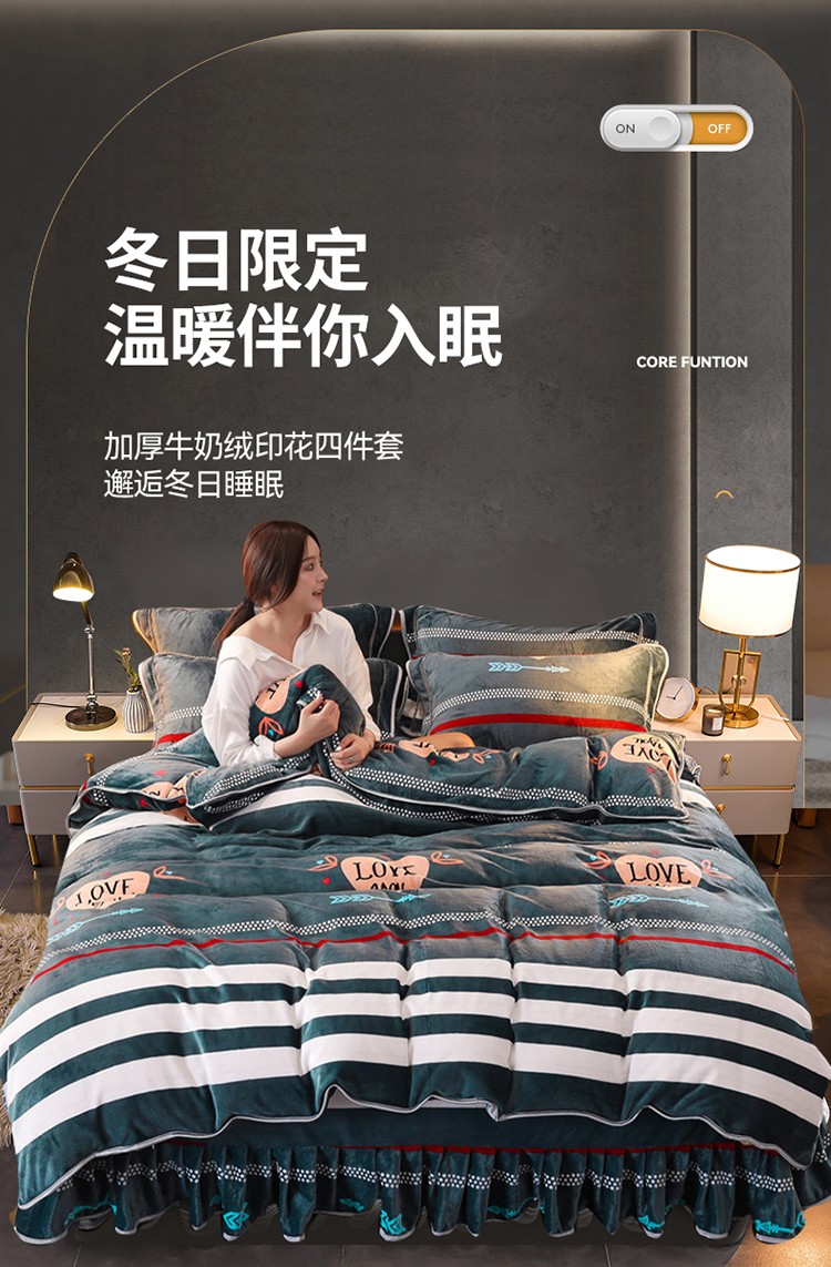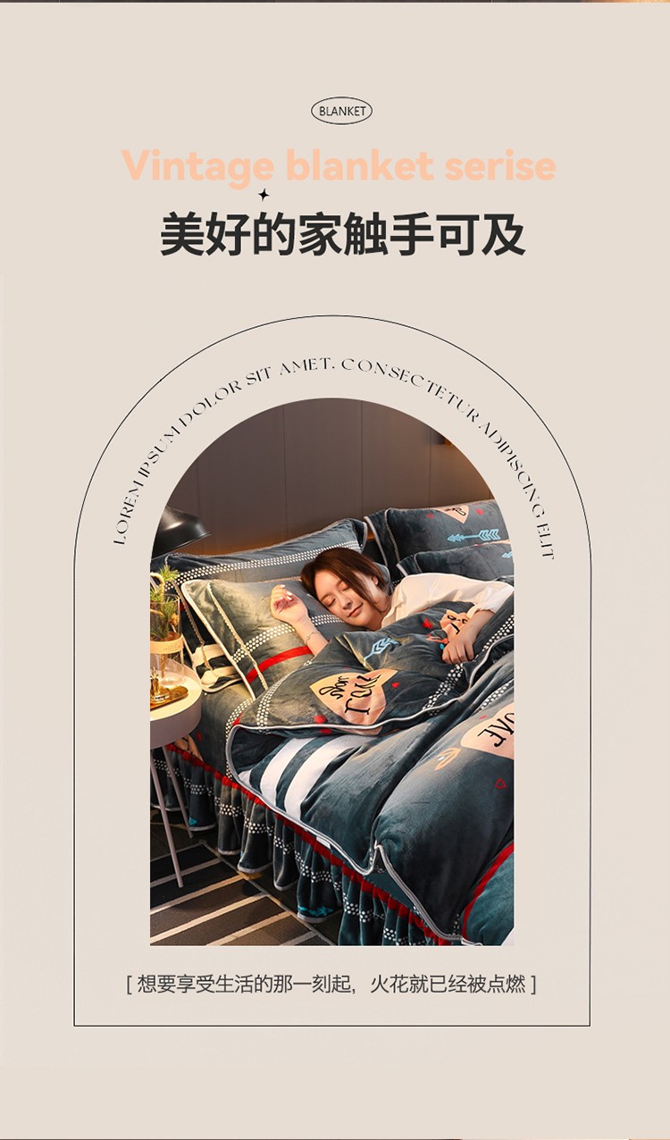 馨梦缘2025直播爆款8.5斤牛奶绒四件套加厚保暖床裙金貂绒 匆匆那年