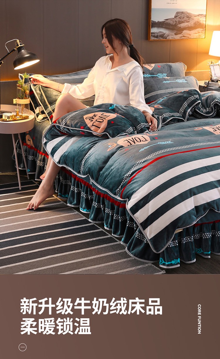 商品名称:馨梦缘2025直播爆款8.5斤牛奶绒四件套加厚保暖床裙金貂绒 匆匆那年