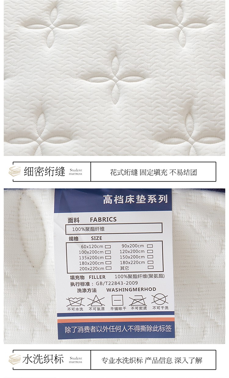 当前位置: 91家纺网 > 商品网购 > 床垫/床褥 > 普通床垫 > 欣罗兰2023立体针织三明治双面床垫-学生款 四叶花-白