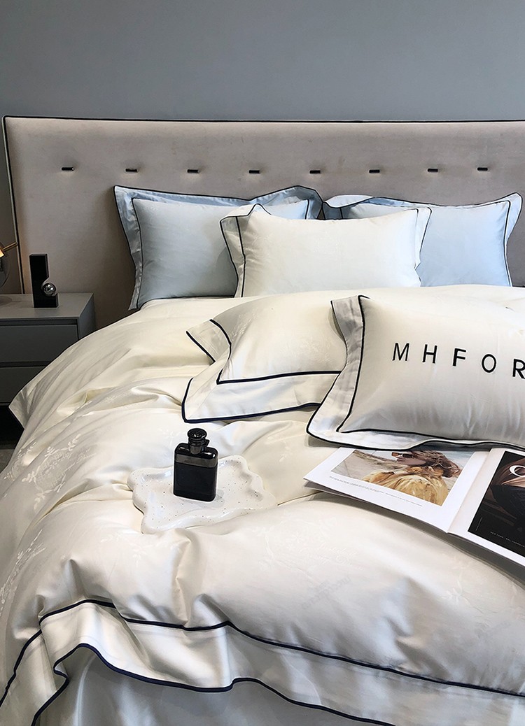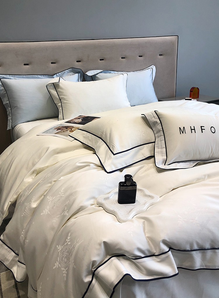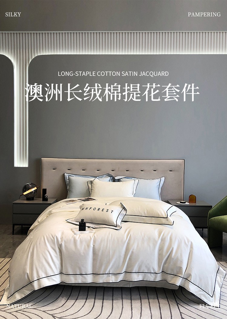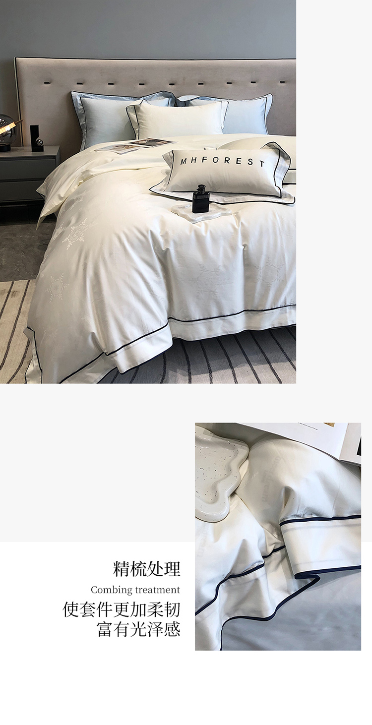 黑白森林2024款 100S支天丝棉提花四件套天丝全棉,芙拉维-裸灰,芙拉维-秋绿,圣露安-雾粉,圣露安-香槟,西西里-奶白,西西里-柔粉