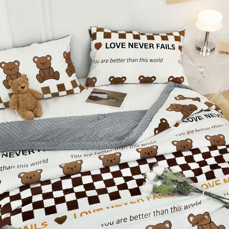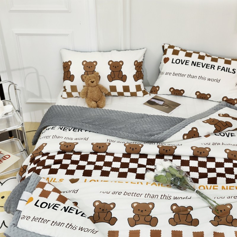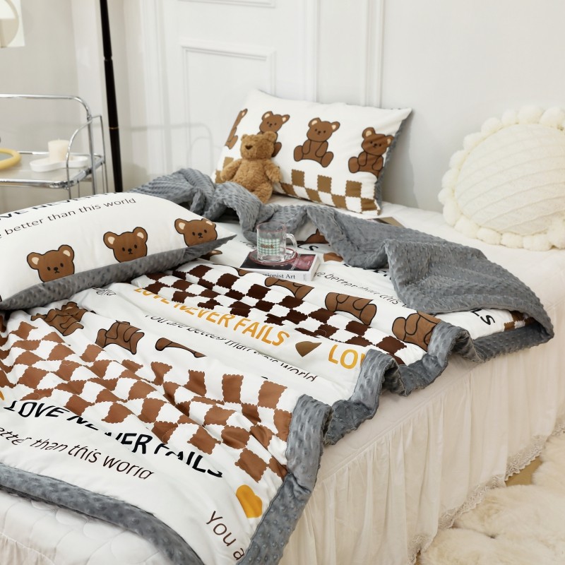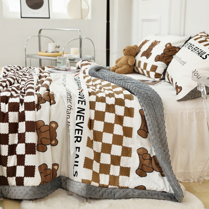 商品名称:星期八 2022新款全棉豆豆被春秋被-系列二 棋盘格熊