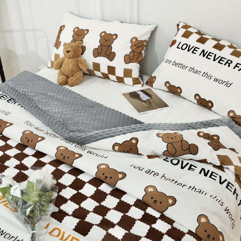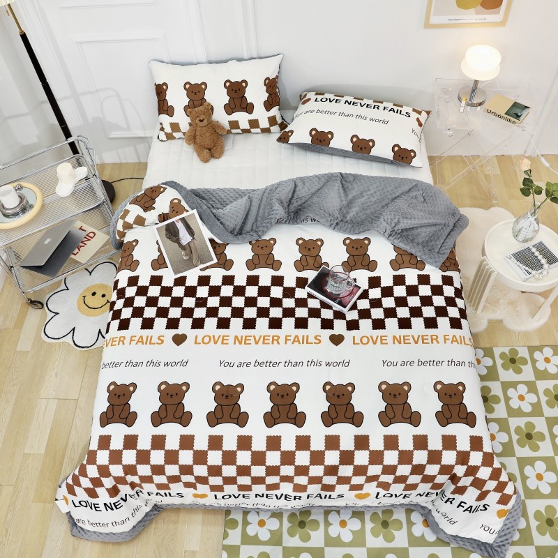 星期八 2022新款全棉豆豆被春秋被-系列二 棋盘格熊