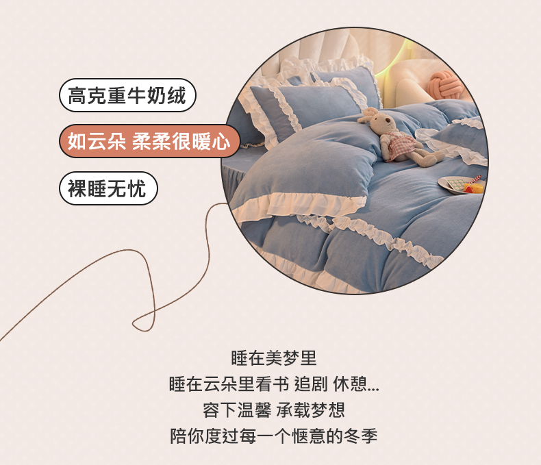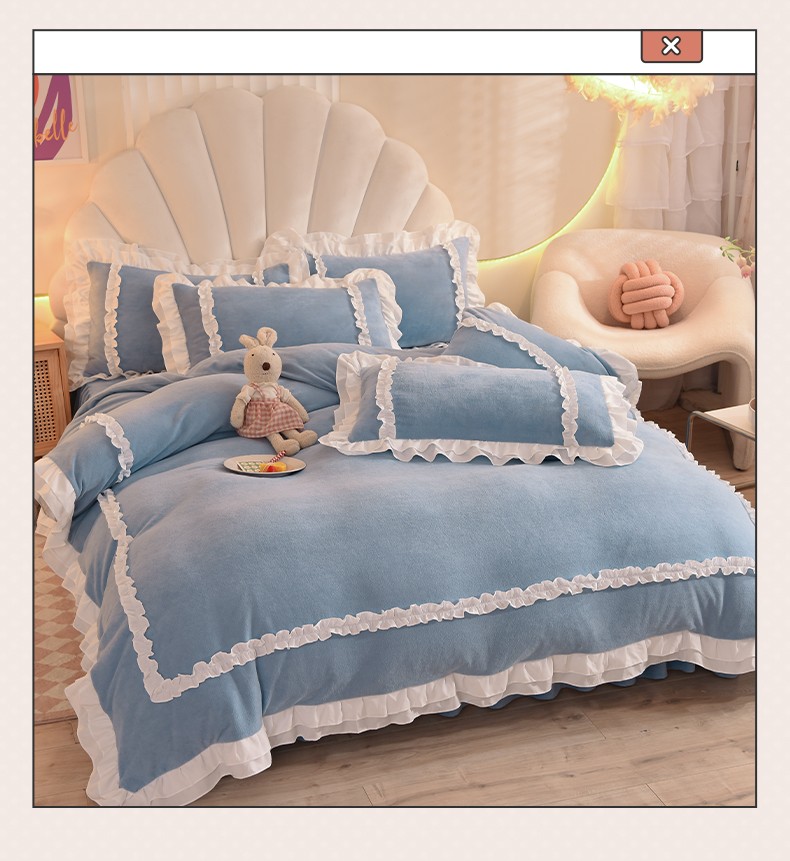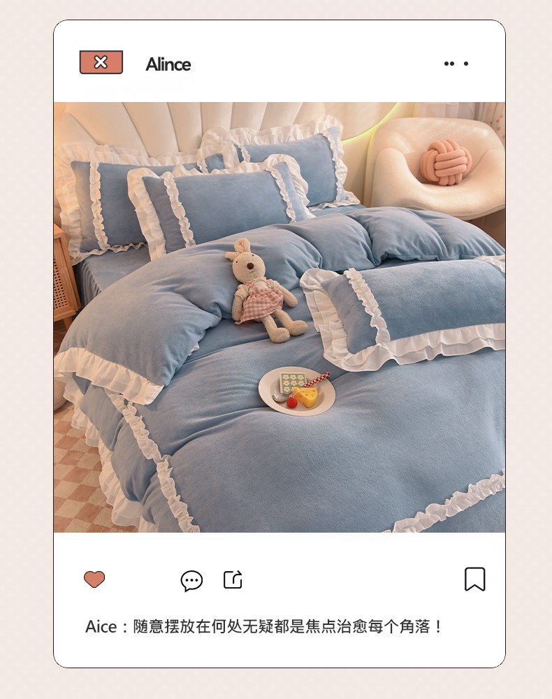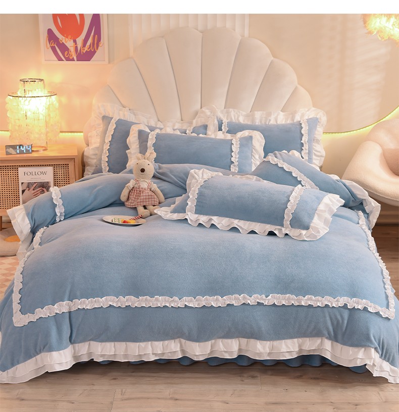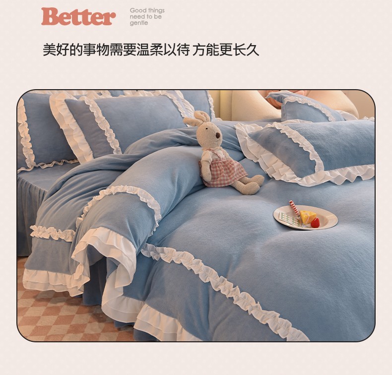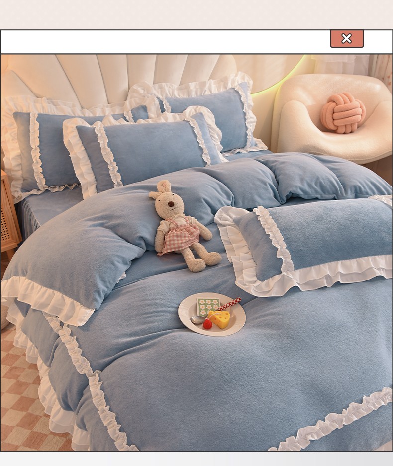 当前位置: 91家纺网 > 商品网购 > 床品套件 > 四件套 > 牛奶绒四件套 > 逸尚阁-2022新款双层花边牛奶绒四件套件套 唯美-薄荷绿
