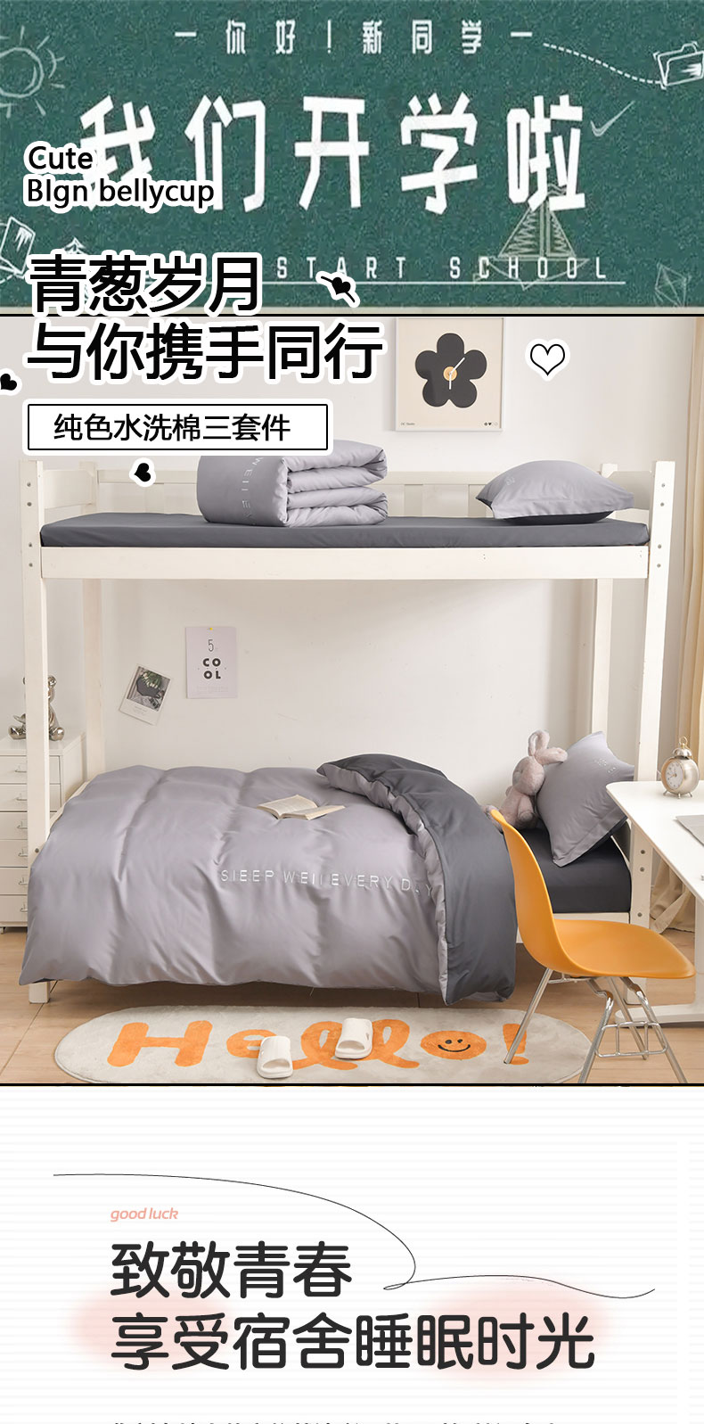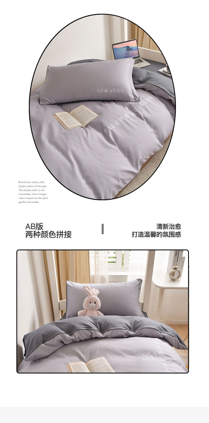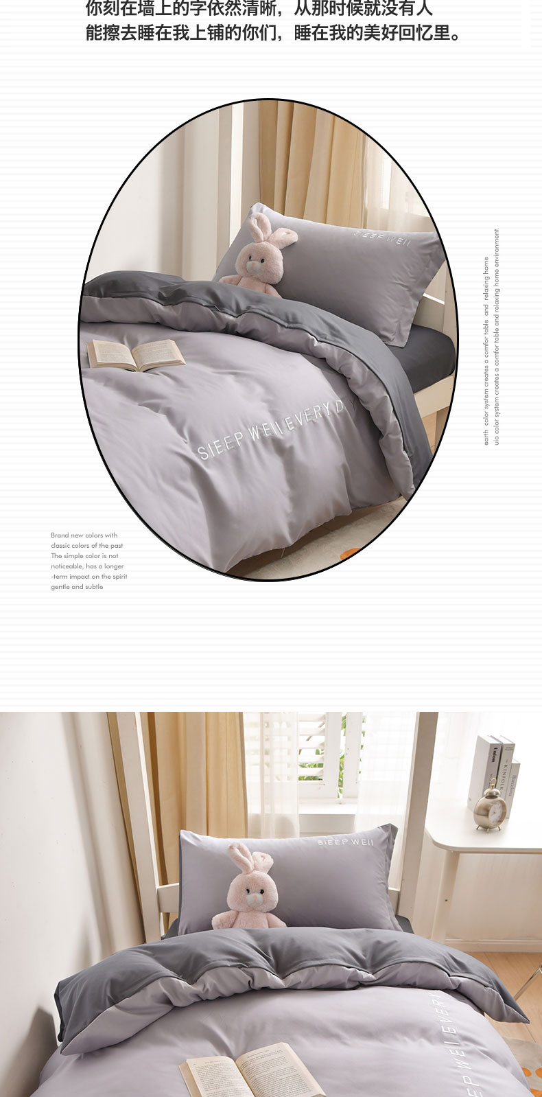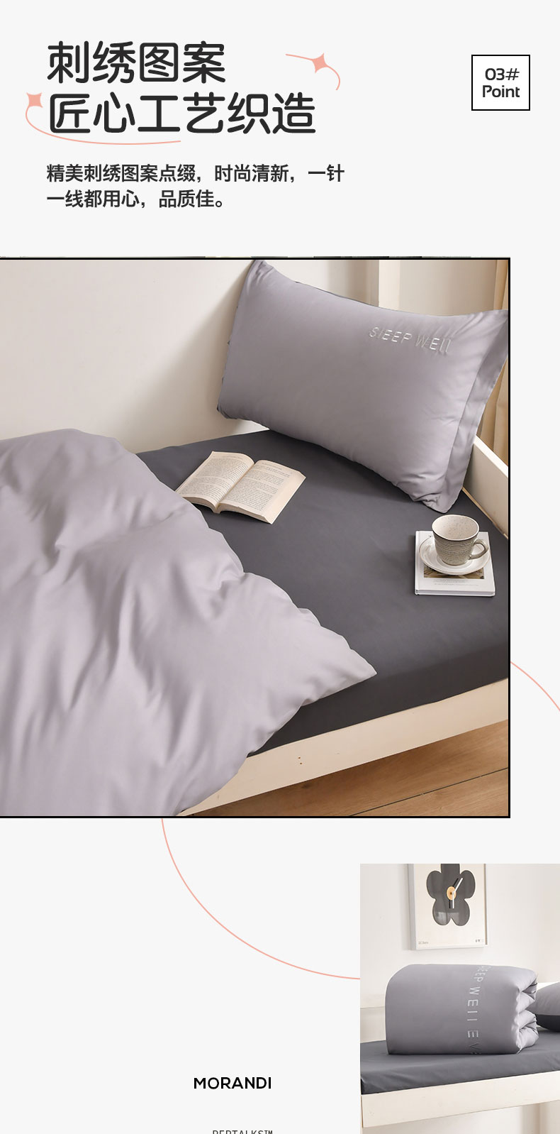 商品名称:啊雅家居纯色水洗磨毛亲肤绣花床单床笠学生三套件奶浅灰加奶深灰