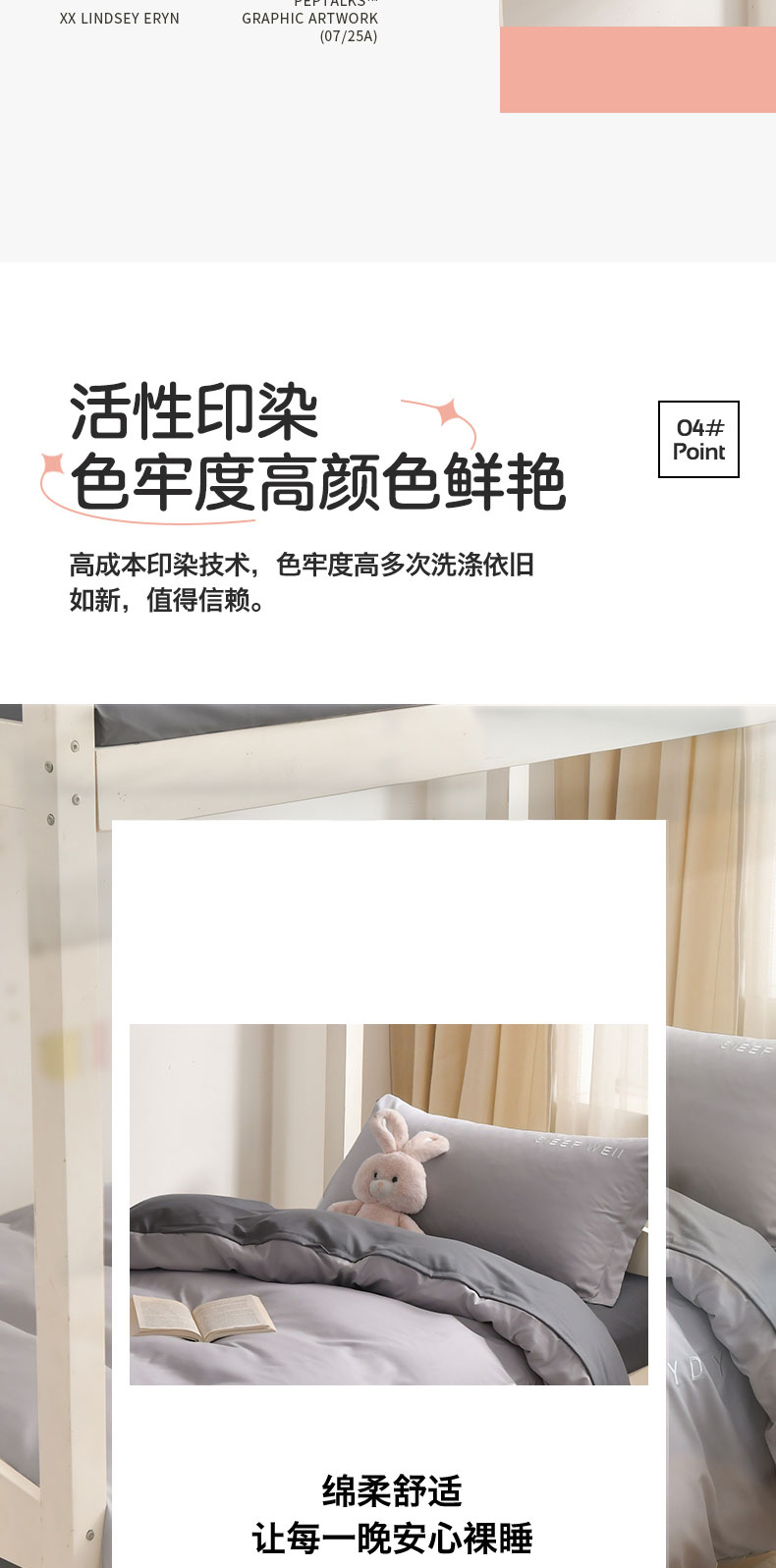 啊雅家居纯色水洗磨毛亲肤绣花床单床笠学生三套件奶浅灰加奶深灰