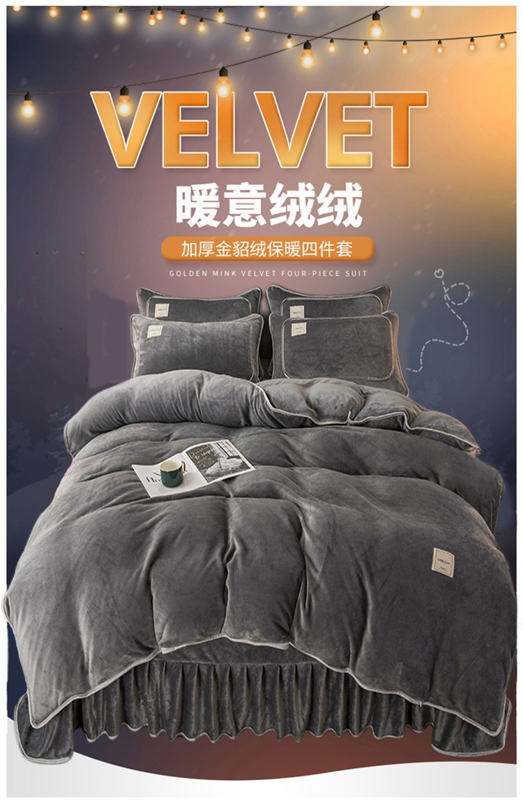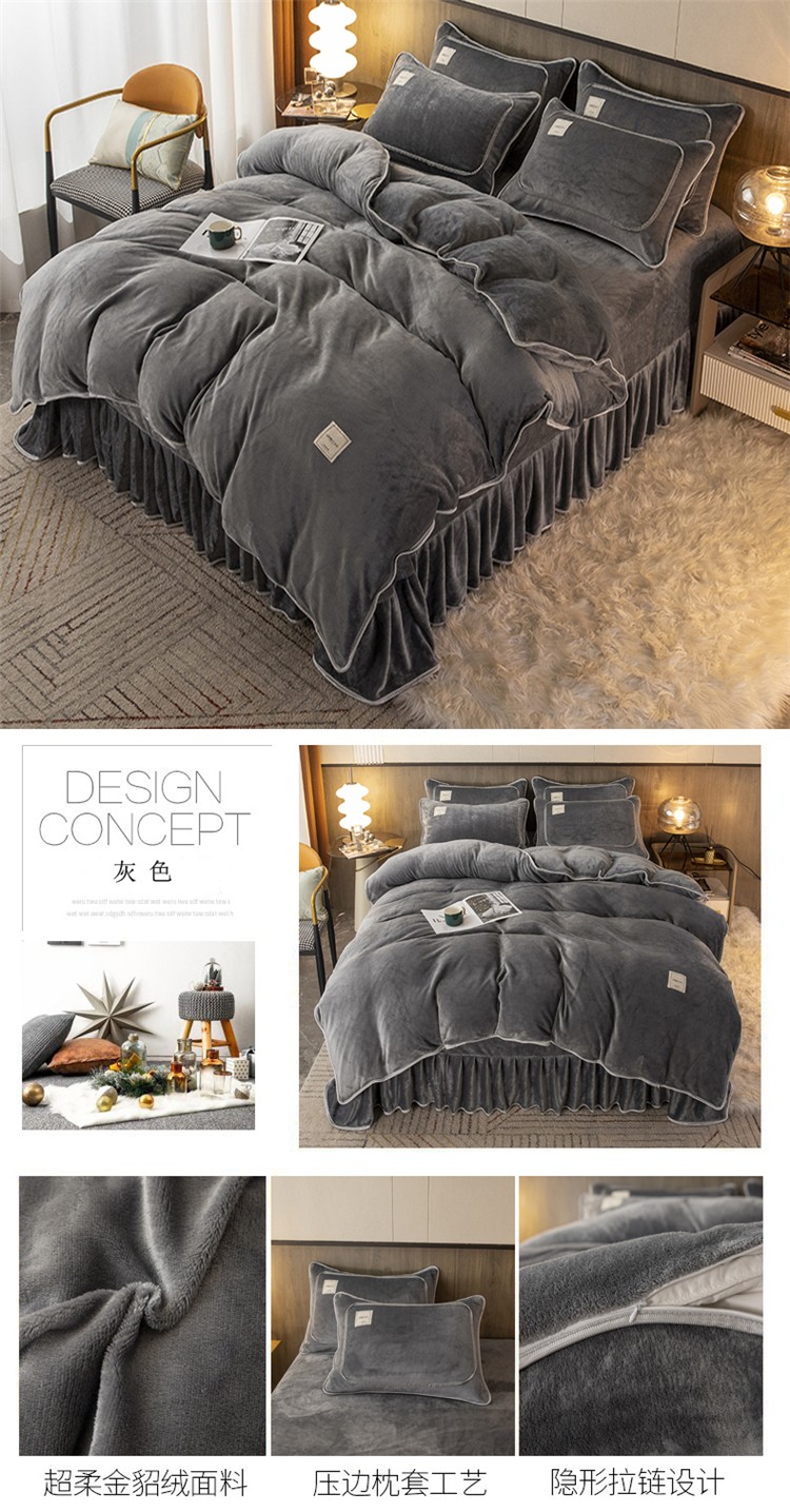 商品名称:能好家纺 2022直播爆款牛奶绒金貂绒四件套 灰色