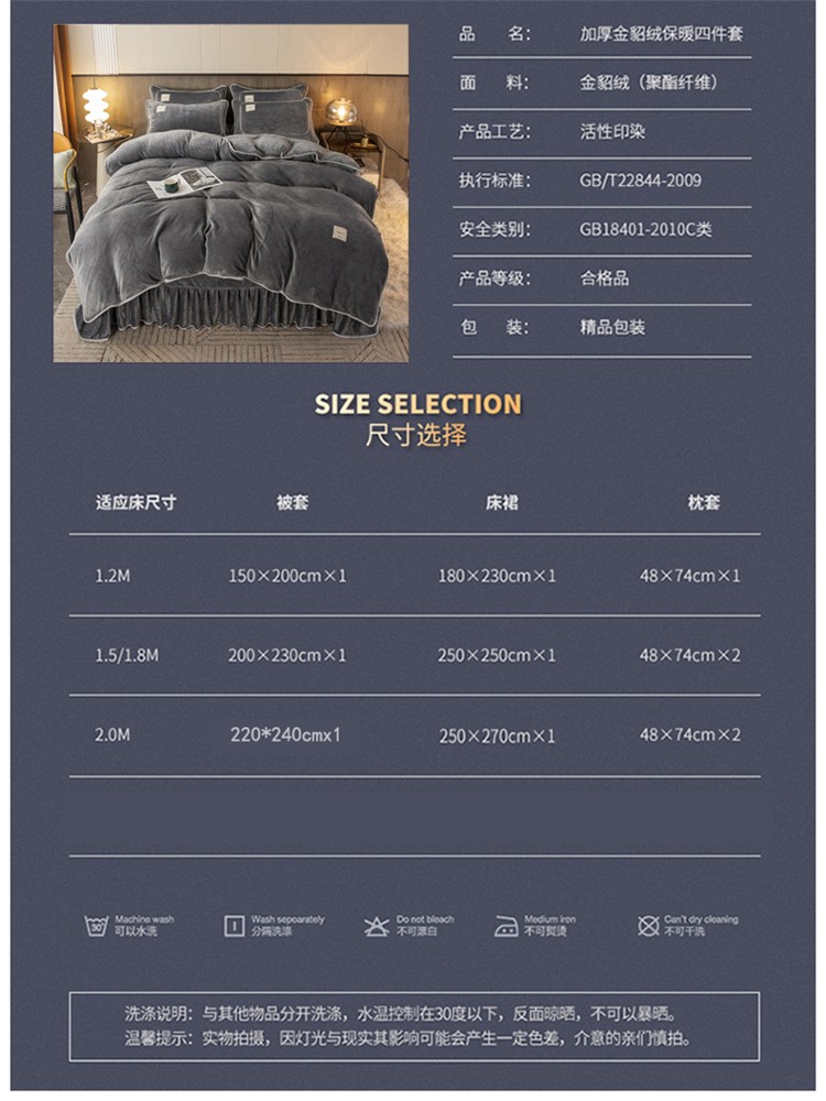 (总)能好家纺 2025新款亲肤舒适水晶绒夹棉床裙款系列四件套,藏青,豆沙,粉玉,灰,酒红,墨绿,月光蓝,宝石兰