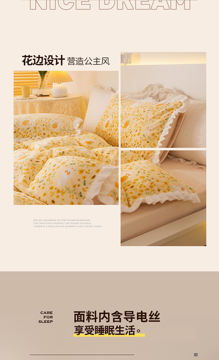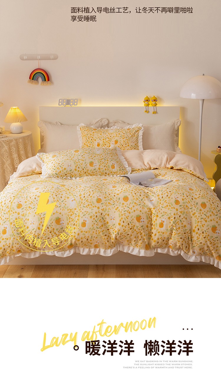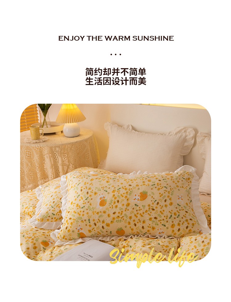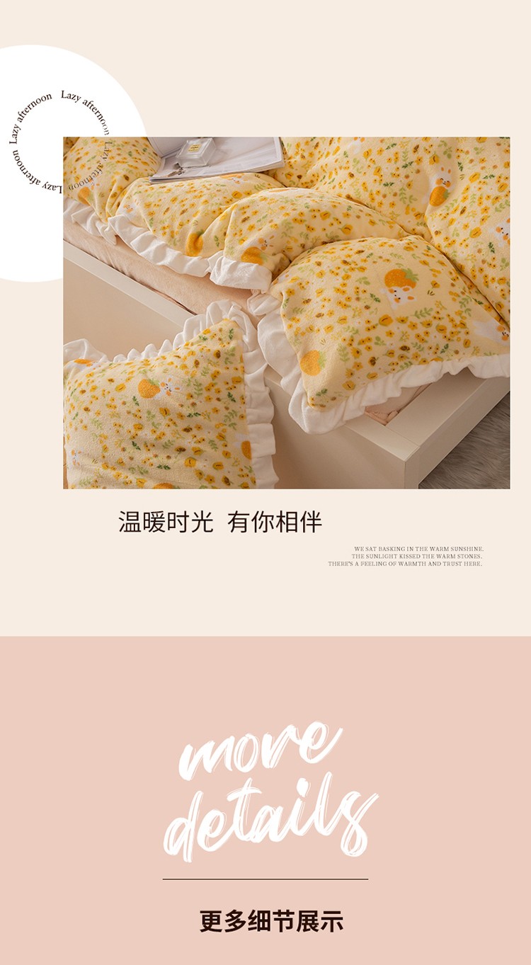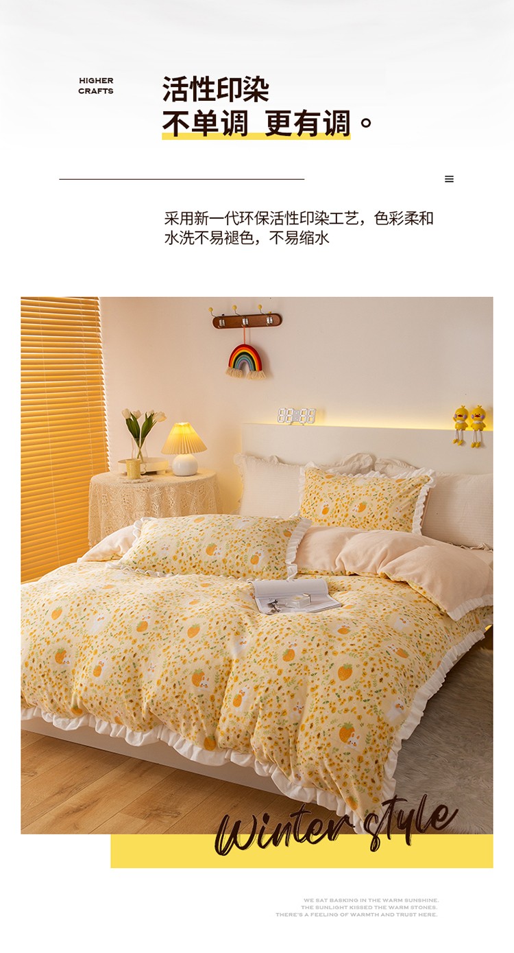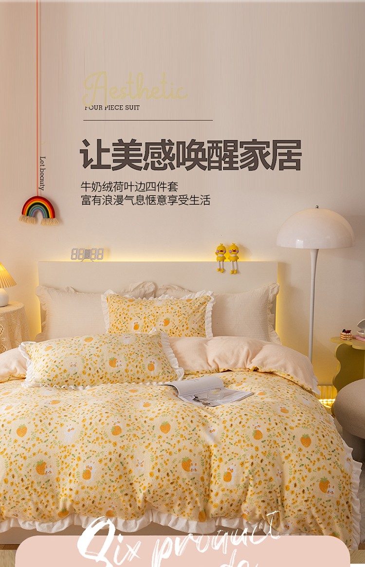 商品名称:二八年华 2022新款印花牛奶绒四件套 草莓兔(黄)