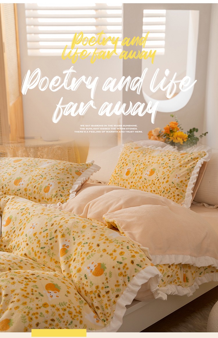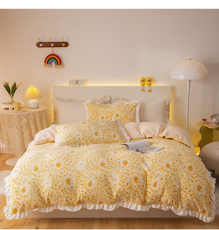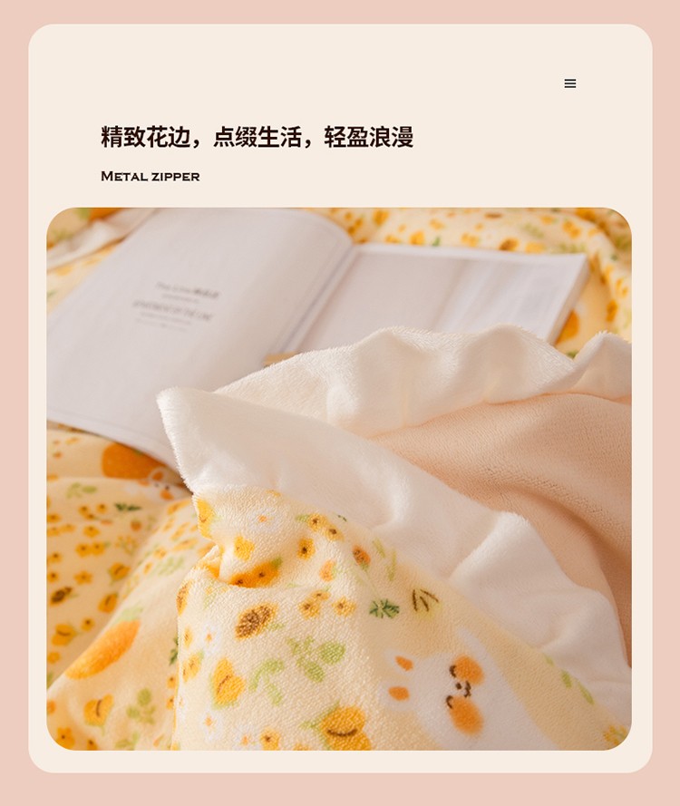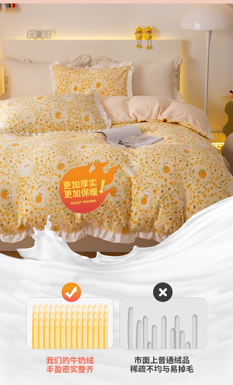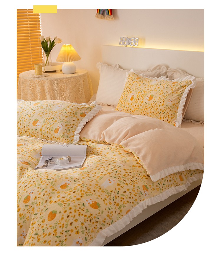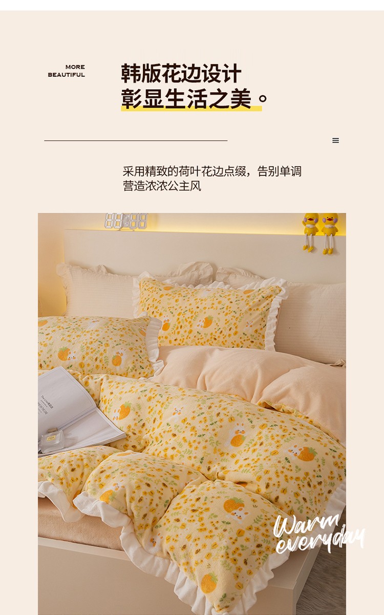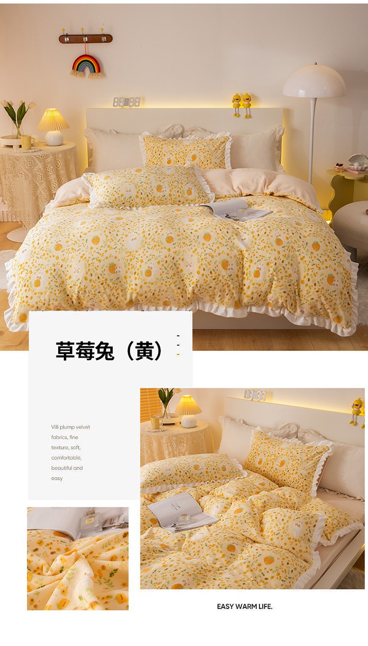 二八年华 2022新款印花牛奶绒四件套 草莓兔(黄)