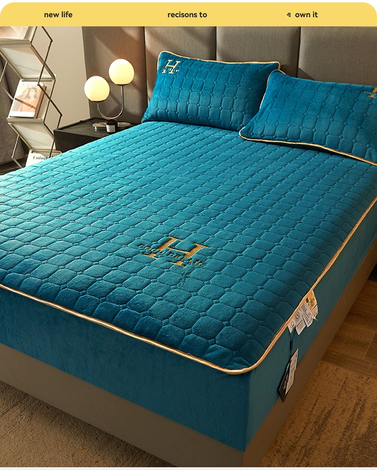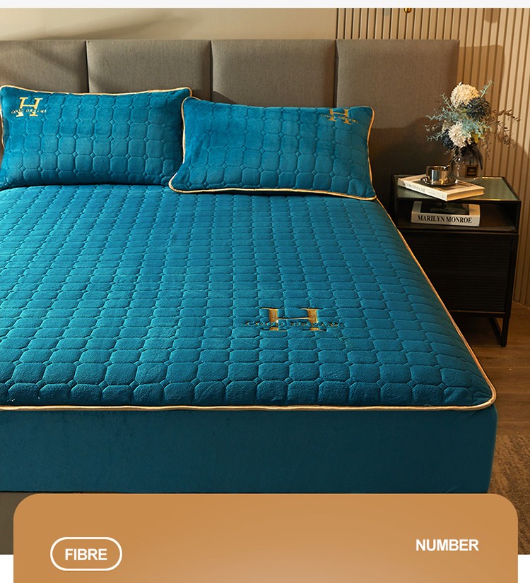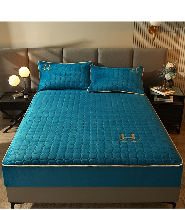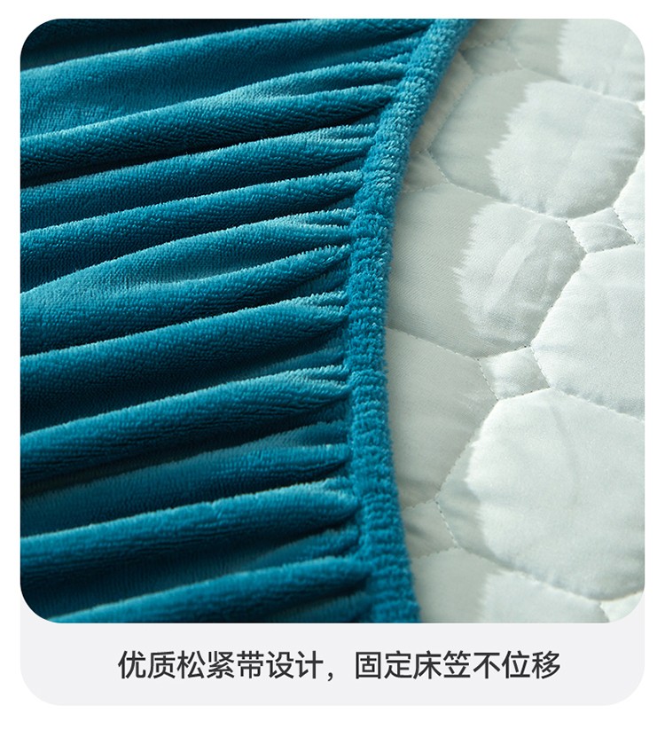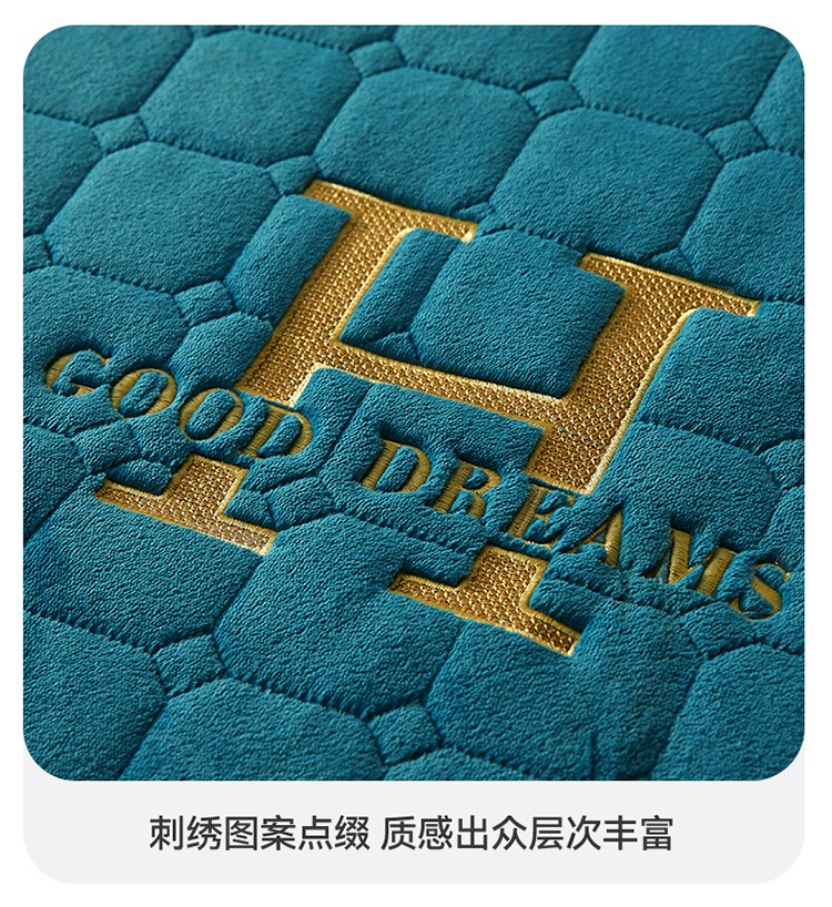 恒爱2022秋冬新款A类牛奶绒刺绣夹棉单床笠--H系列孔雀绿