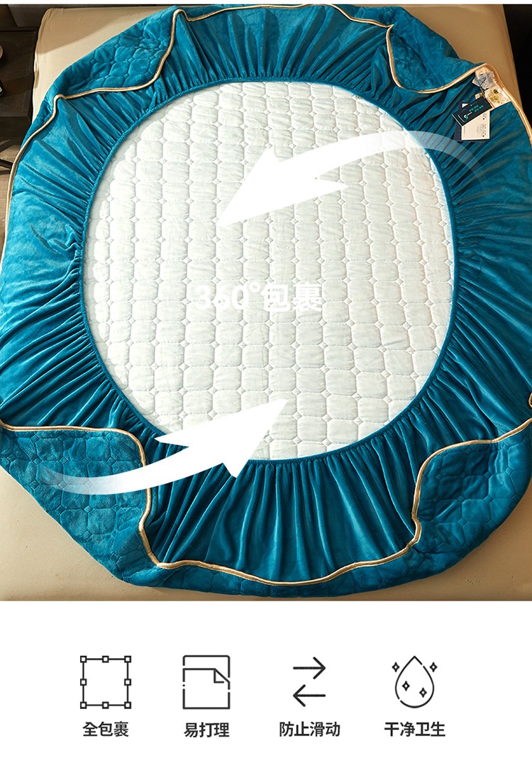 商品名称:恒爱2022秋冬新款A类牛奶绒刺绣夹棉单床笠--H系列孔雀绿