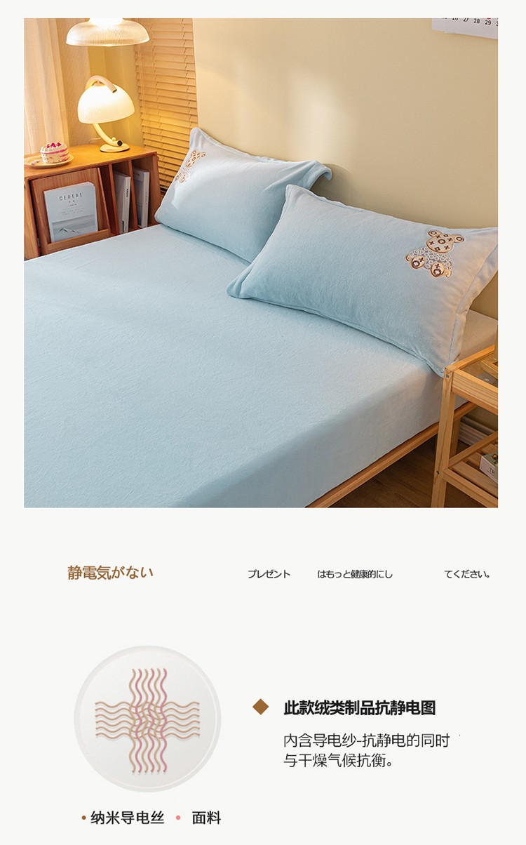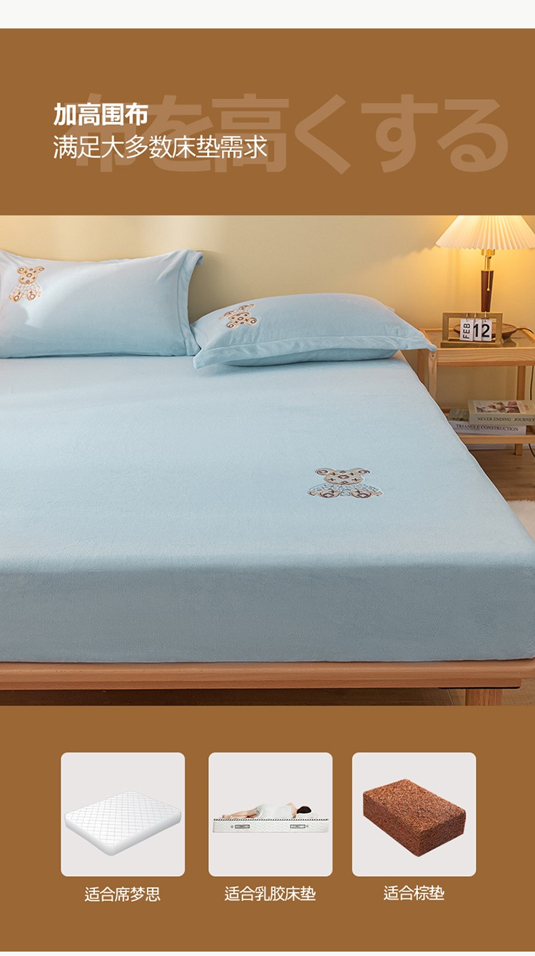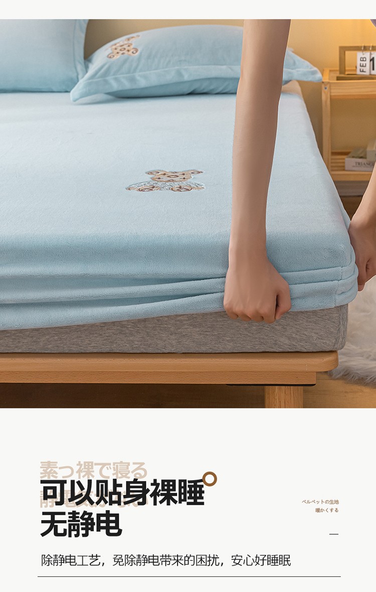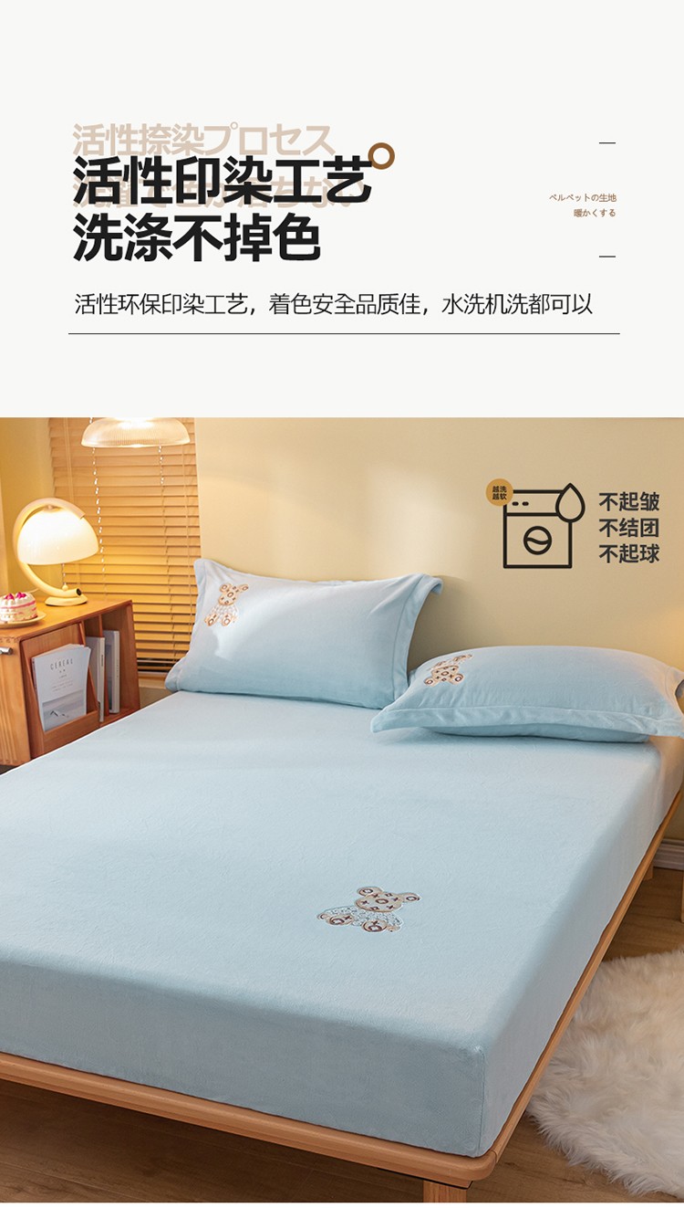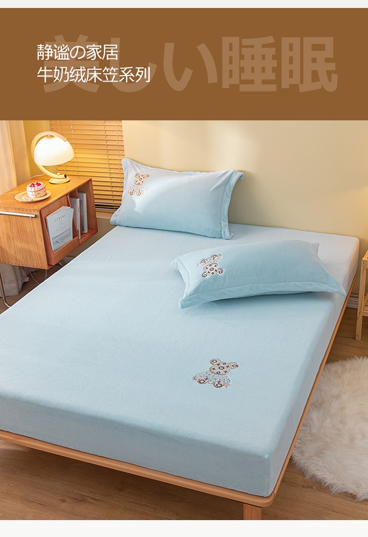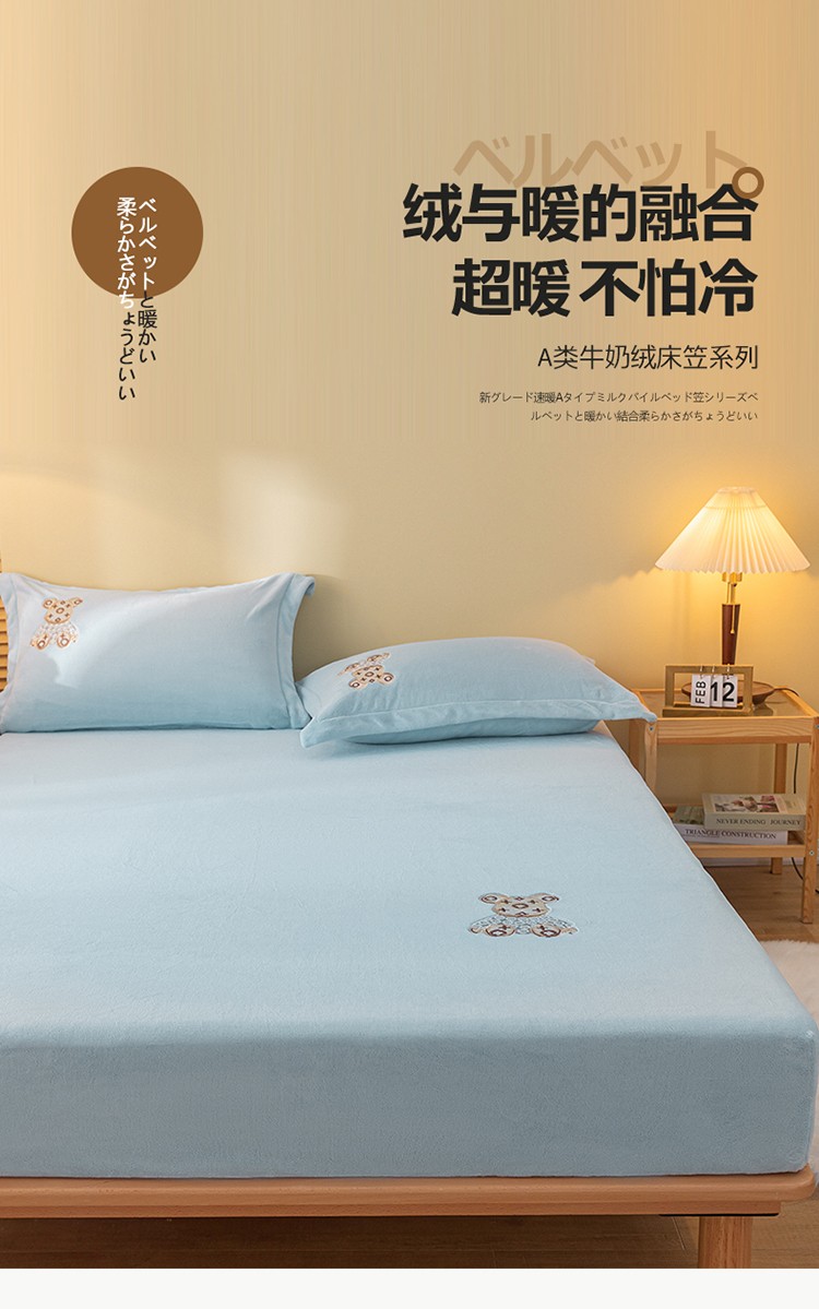 商品名称:蓝米卡夫 2024新款暴力熊A类牛奶绒保暖单床笠 三亚蓝