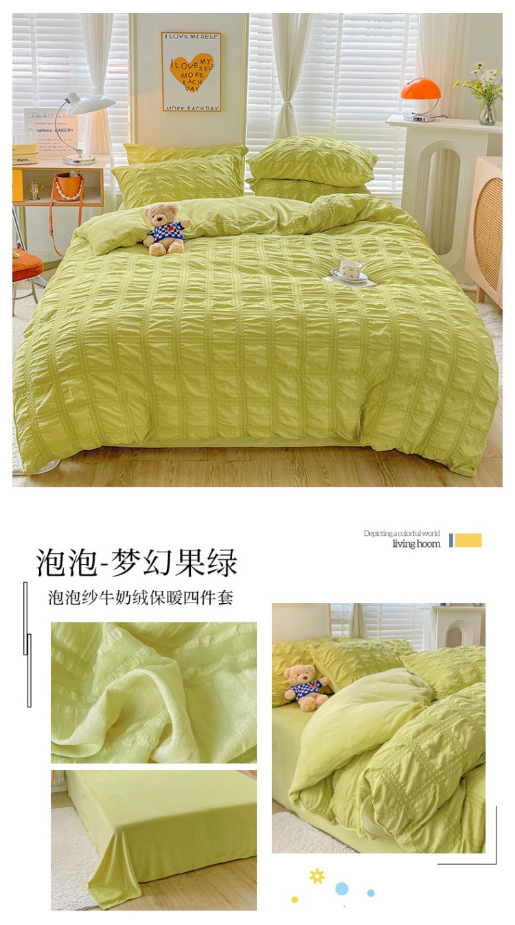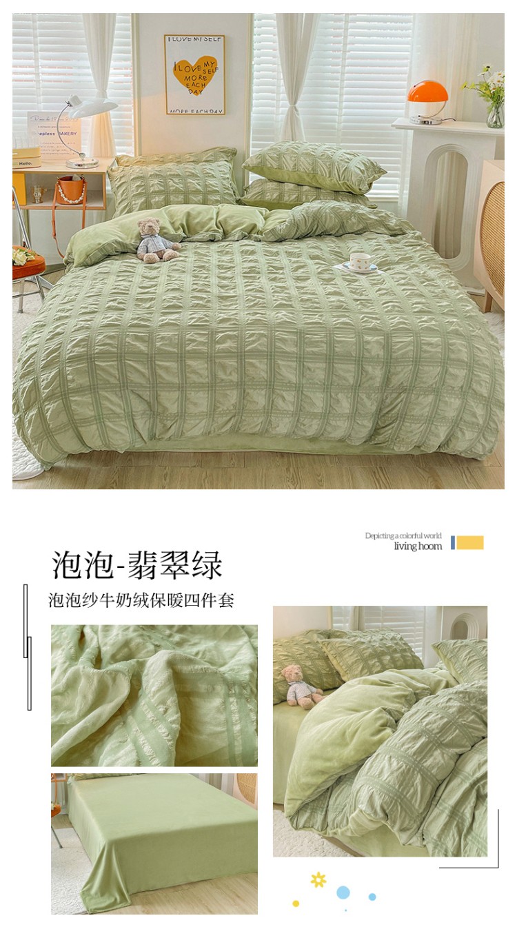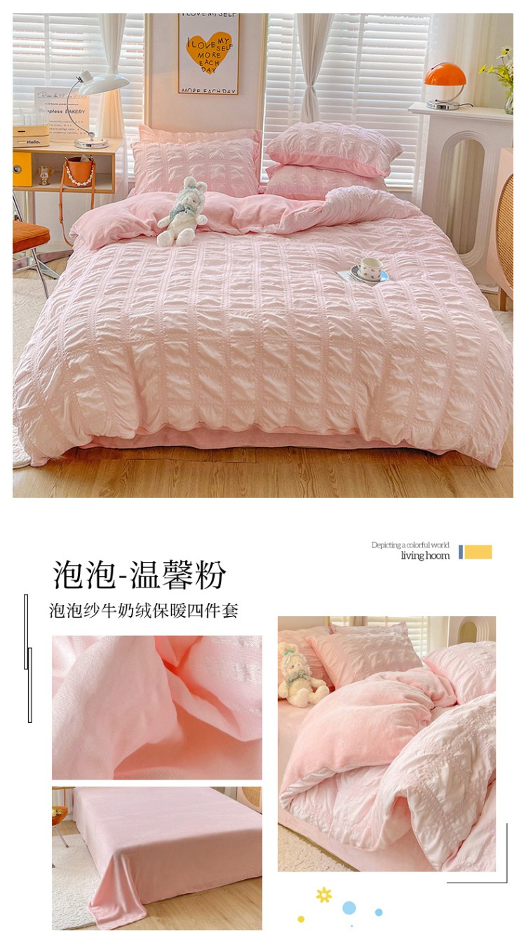 (总)寐居 2022新款泡泡纱牛奶绒四件套