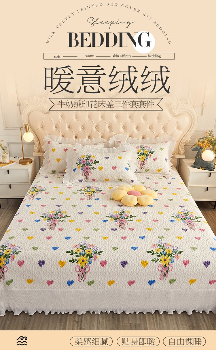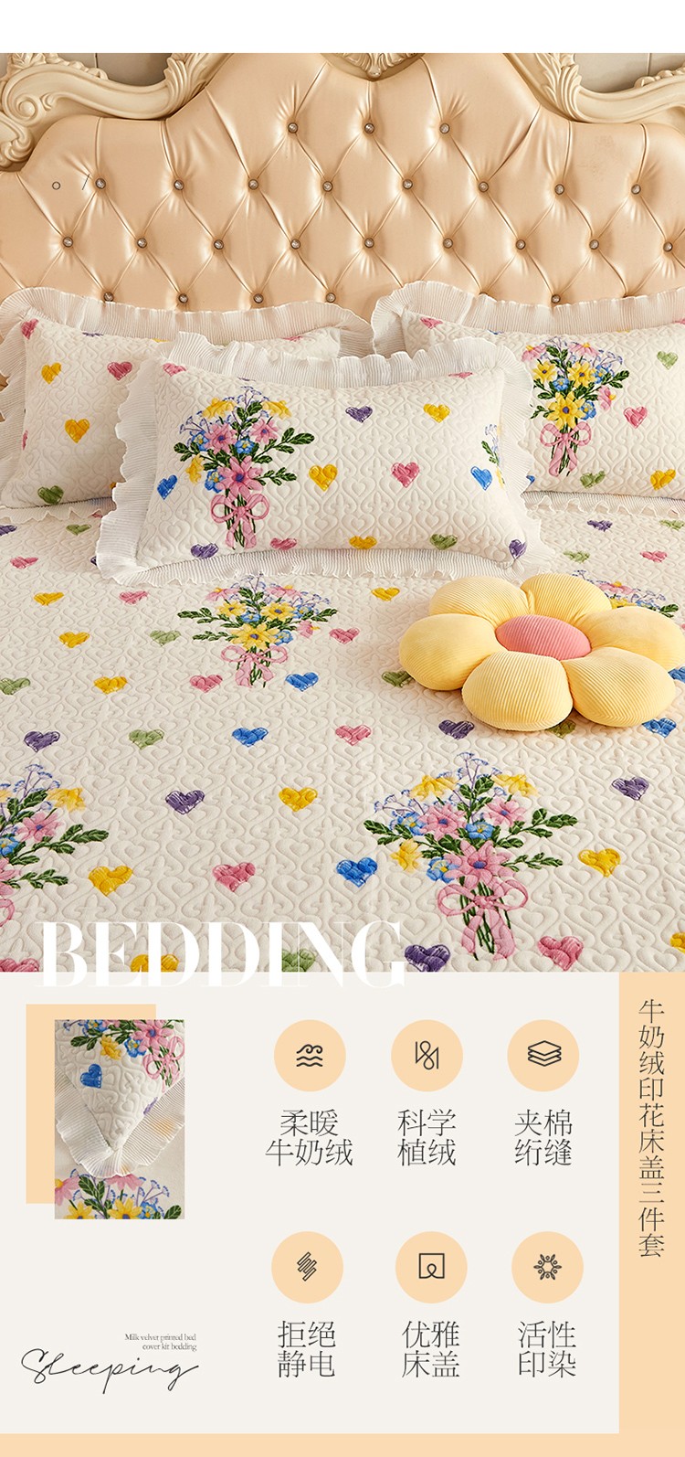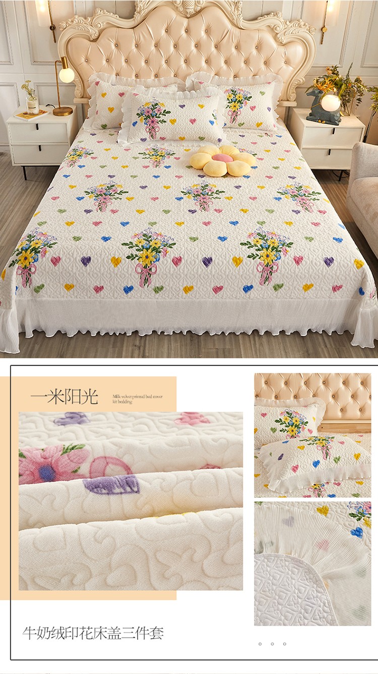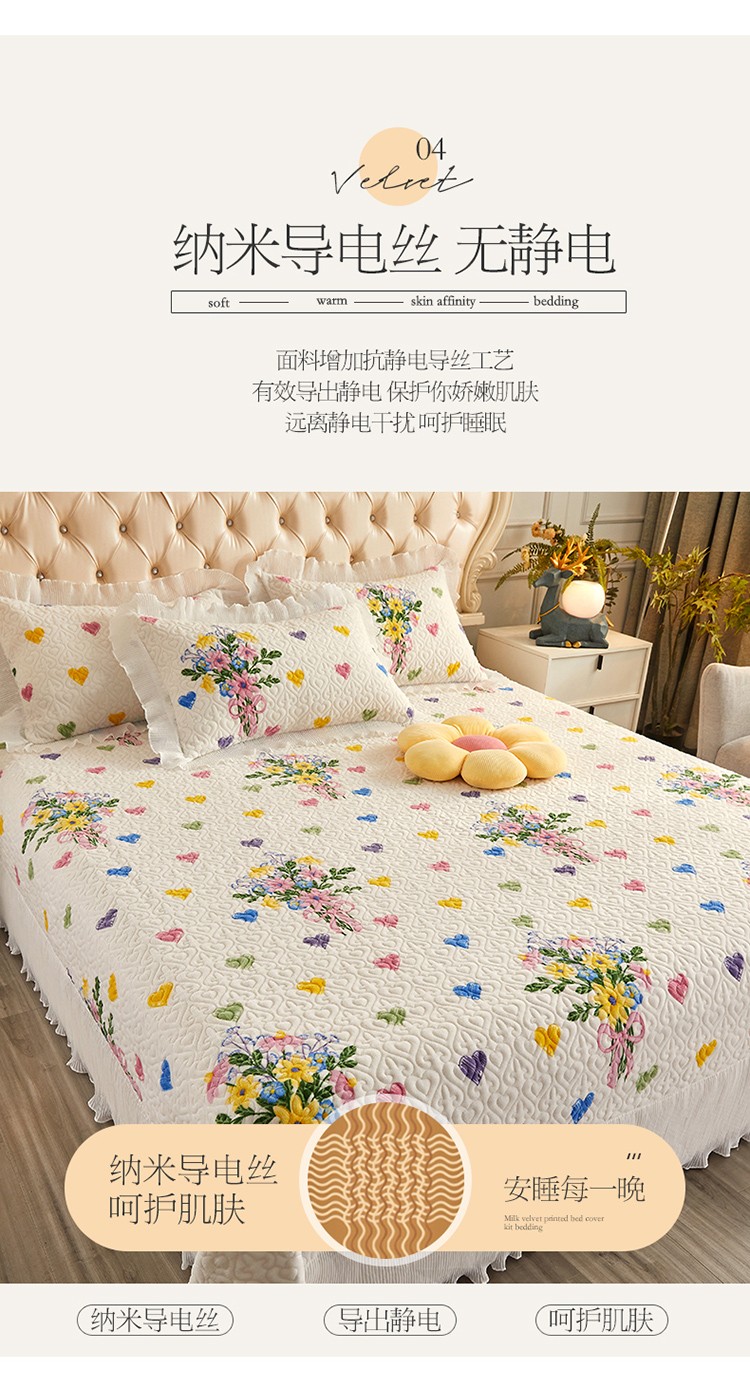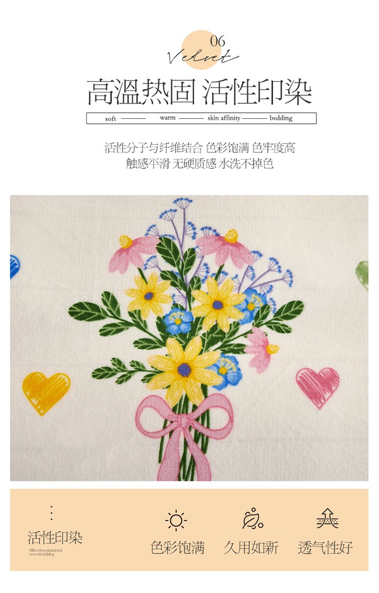 当前位置: 91家纺网 > 商品网购 > 床品套件 > 四件套 > 全棉普通四件套 > 宜凡 2022新款牛奶绒小清新床盖三四件套 一米阳光