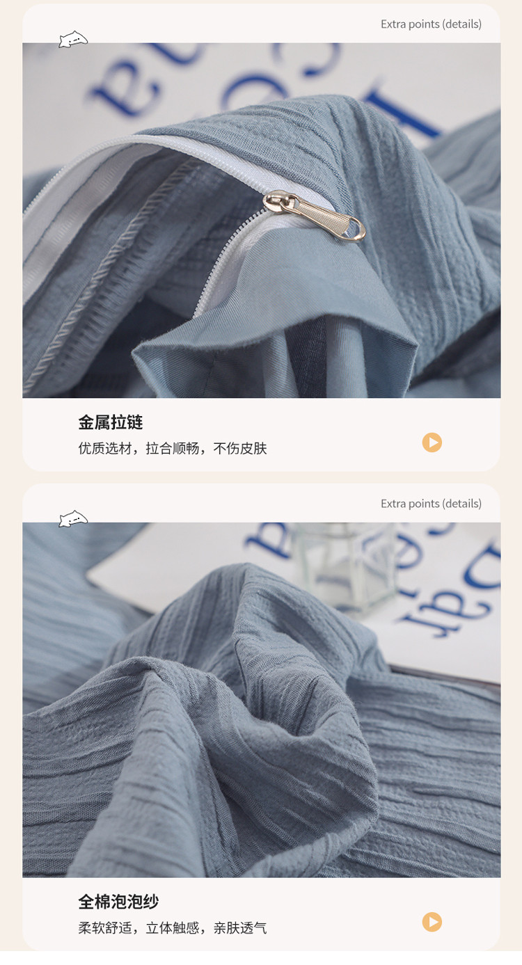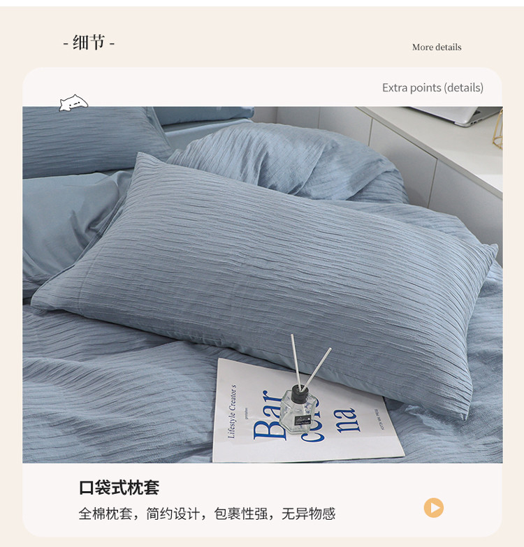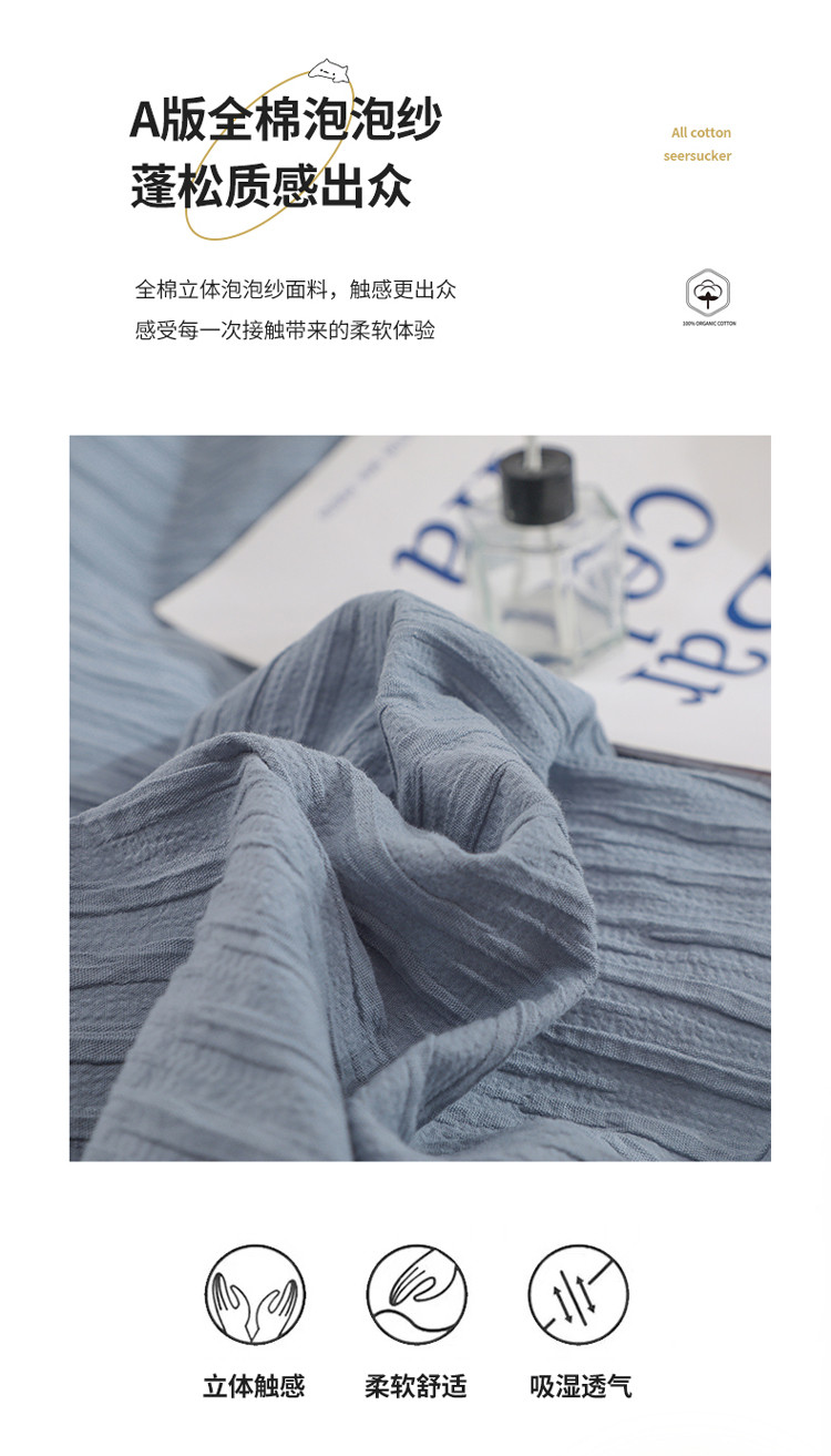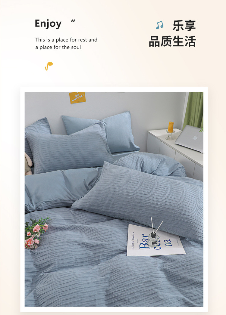 当前位置: 91家纺网 > 商品网购 > 床品套件 > 四件套 > 全棉普通四件套 > 沐晴 2022新款简约纯棉双拼泡泡纱全棉床单床笠款四件套 雾霾蓝