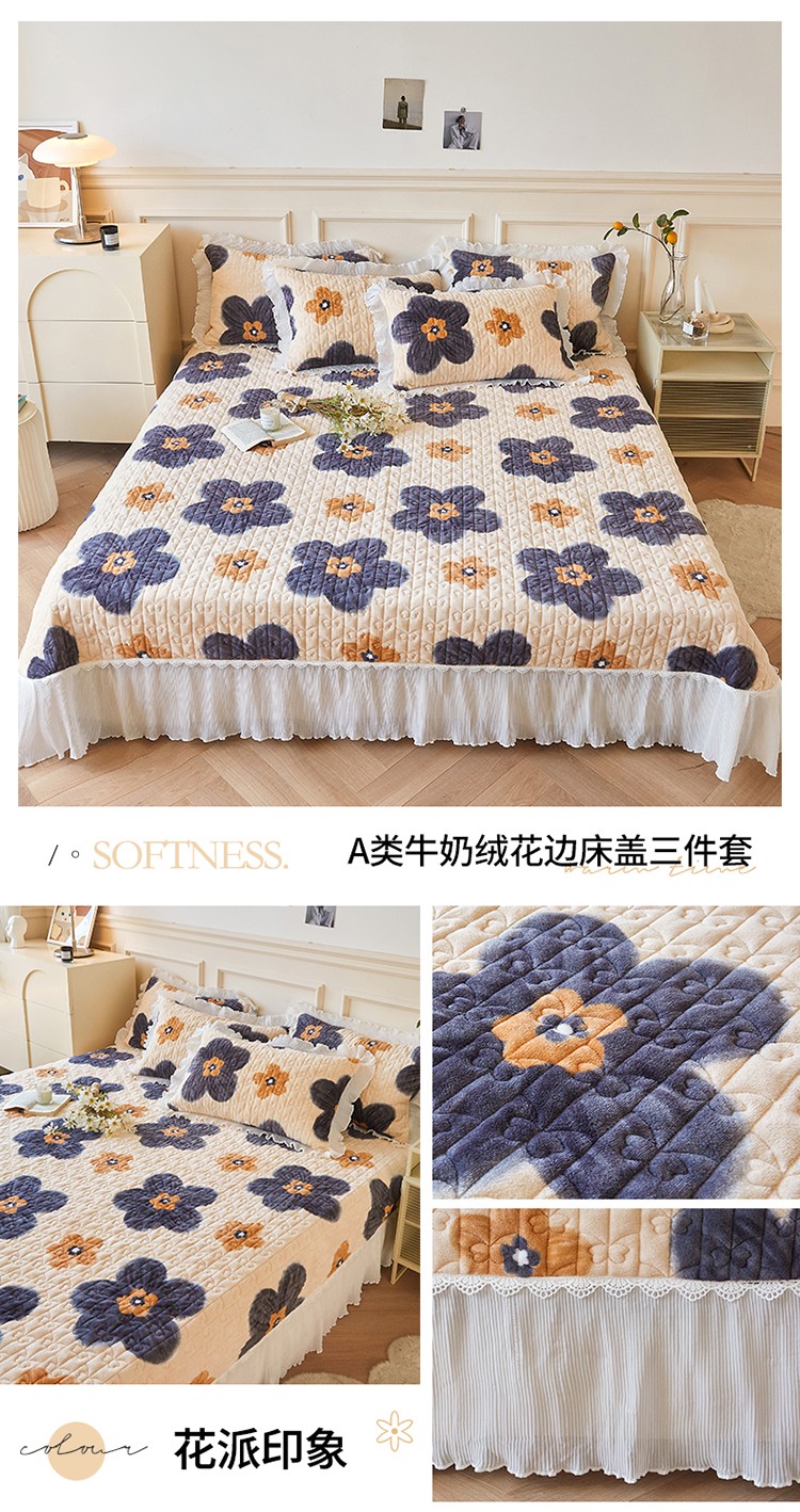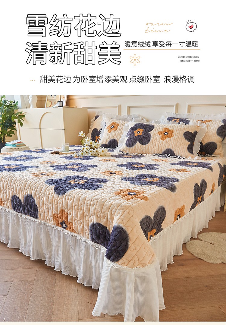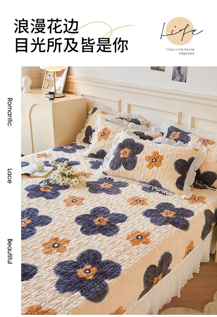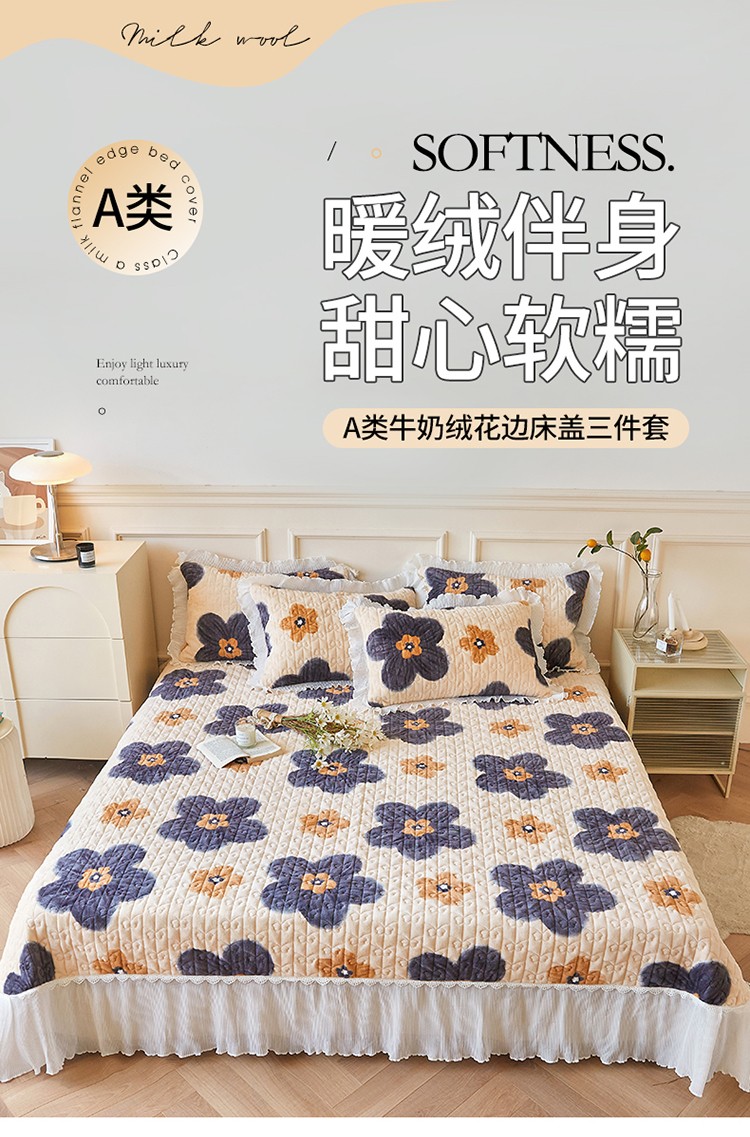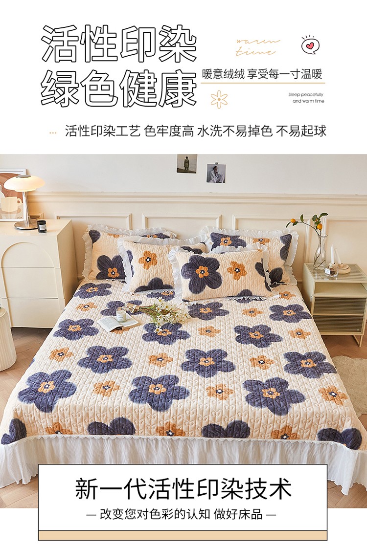 当前位置: 91家纺网 > 商品网购 > 床品套件 > 四件套 > 全棉普通四件套 > 宜凡 2022秋冬新款A类牛奶绒印花花边床盖三四件套花派印象