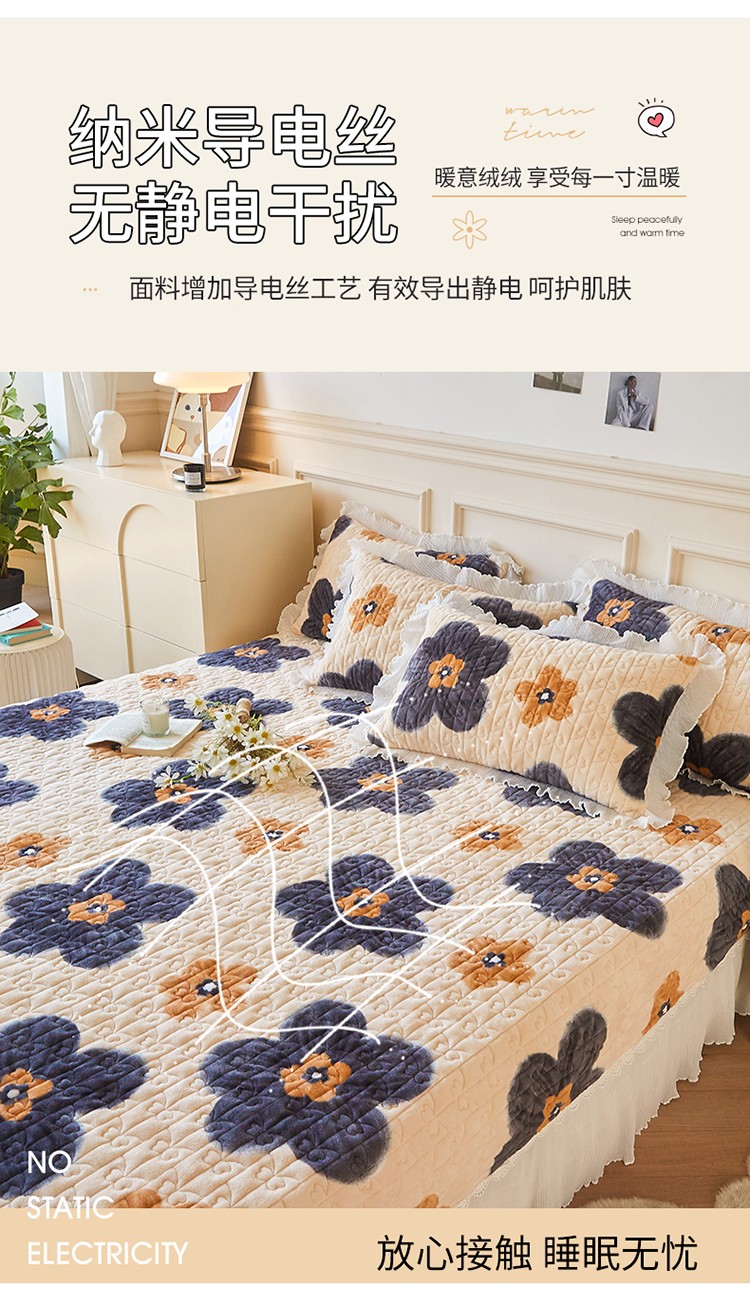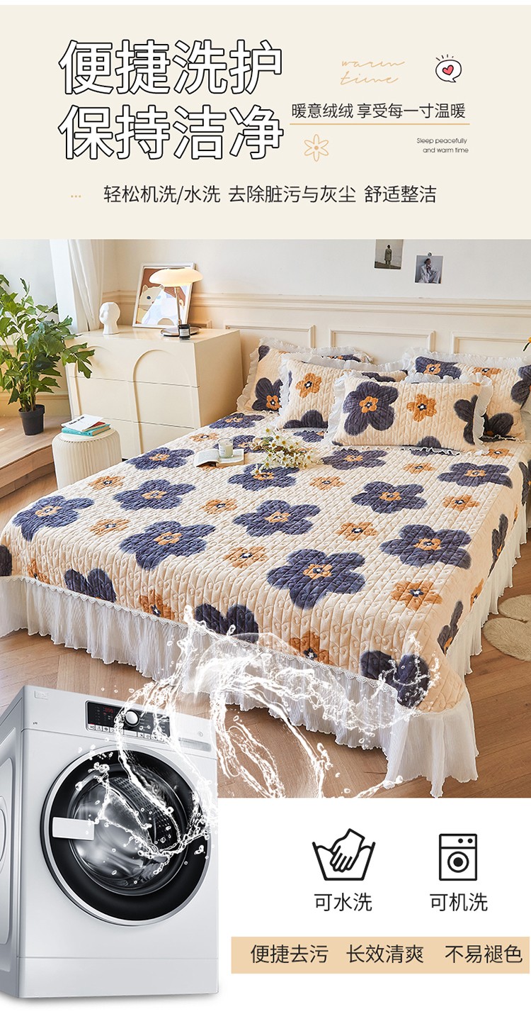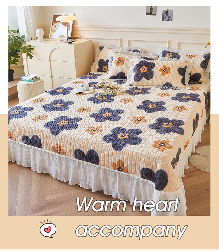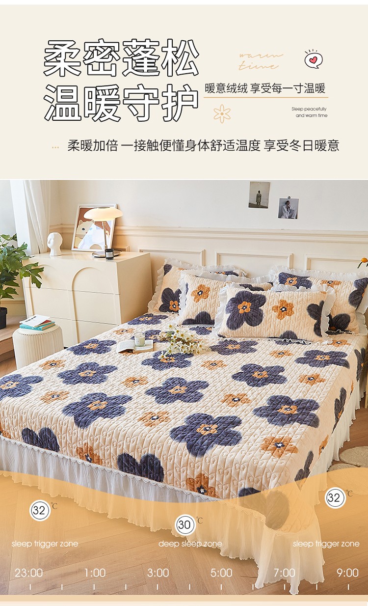 当前位置: 91家纺网 > 商品网购 > 床品套件 > 四件套 > 全棉普通四件套 > 宜凡 2022秋冬新款A类牛奶绒印花花边床盖三四件套花派印象