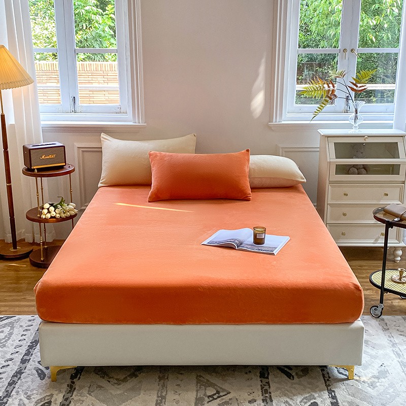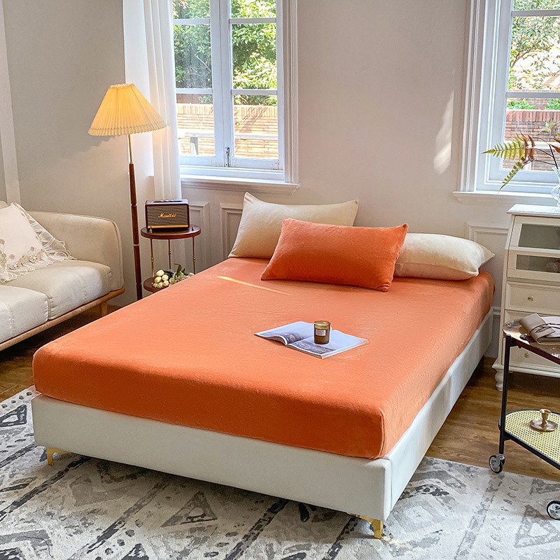 商品名称:吾诺 2022新款牛奶绒单品床笠 彩虹橙