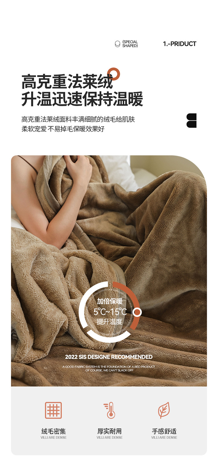商品名称:寐眠 2022新款法莱绒毛毯 浅咖