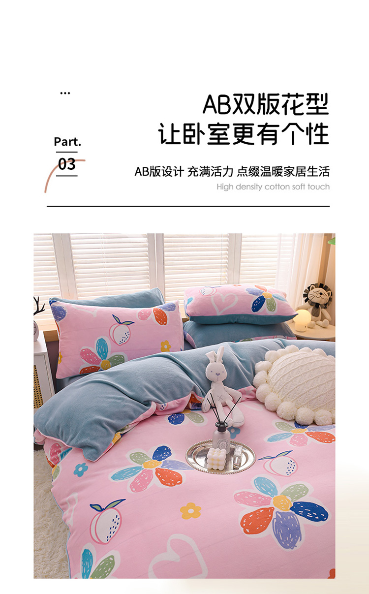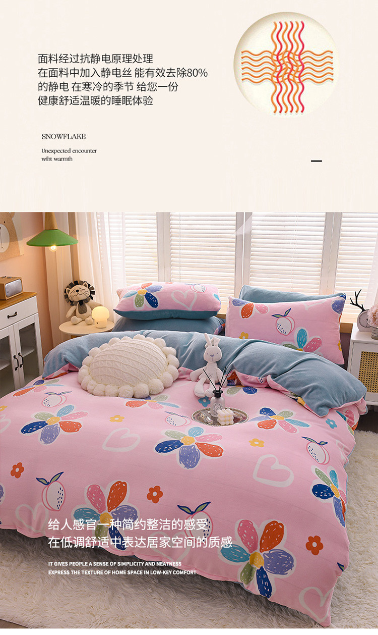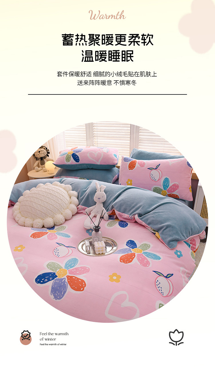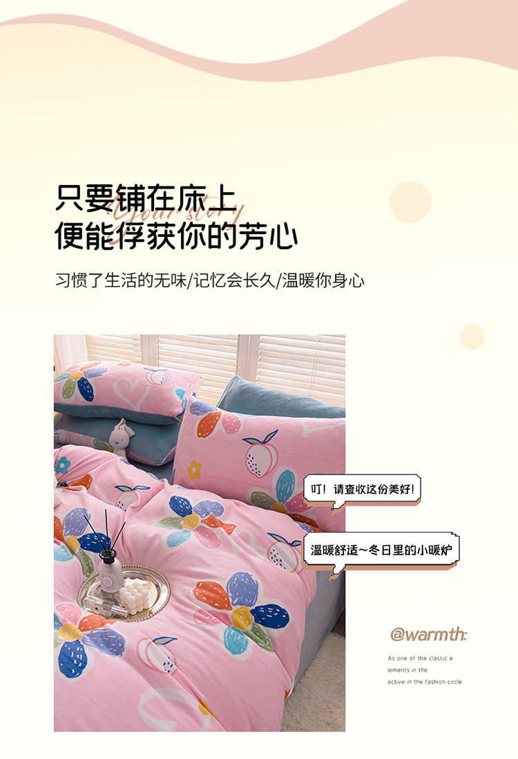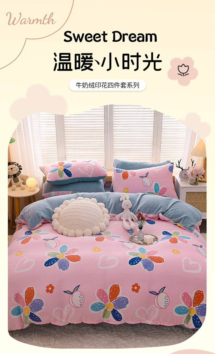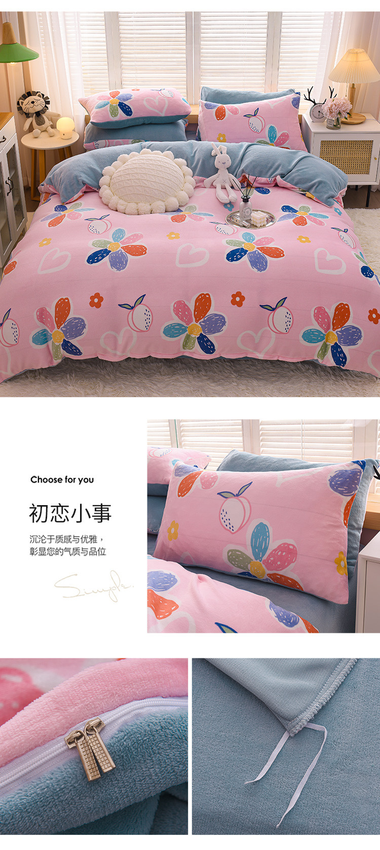 芃成 2022新款加厚双面牛奶绒印花床品系列-四件套 初恋小事