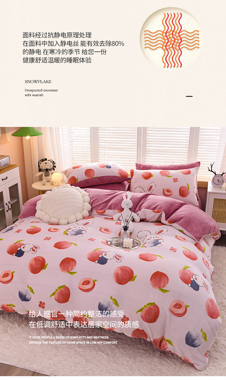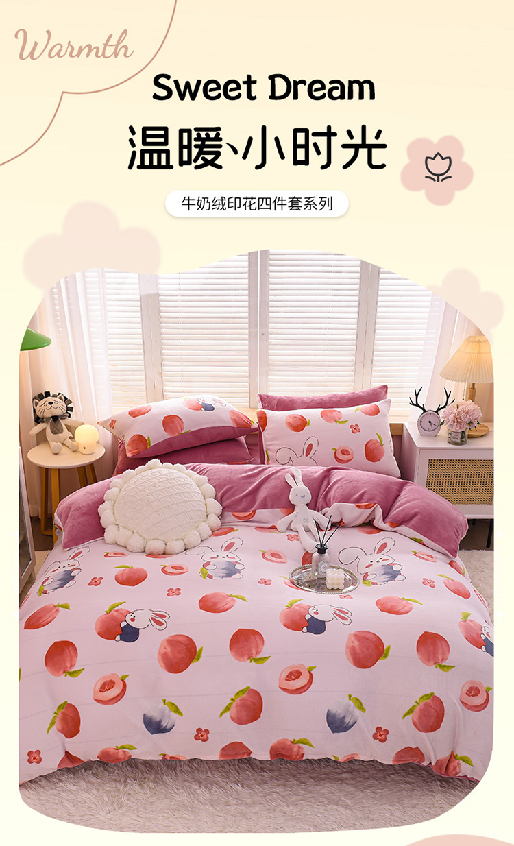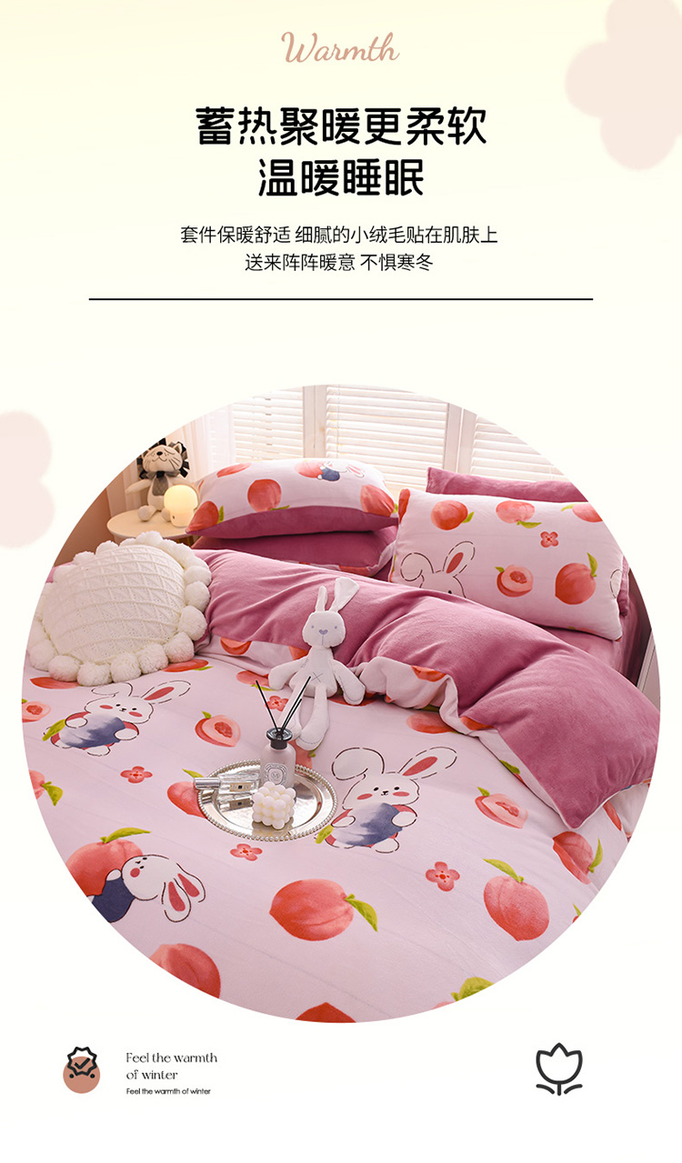 商品名称:芃成 2022新款加厚双面牛奶绒印花床品系列-四件套 萌兔