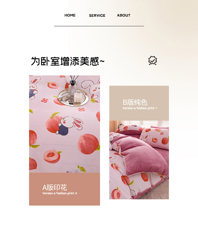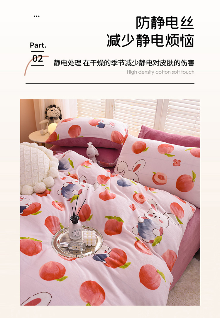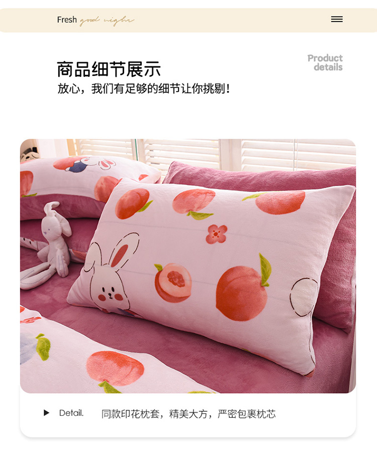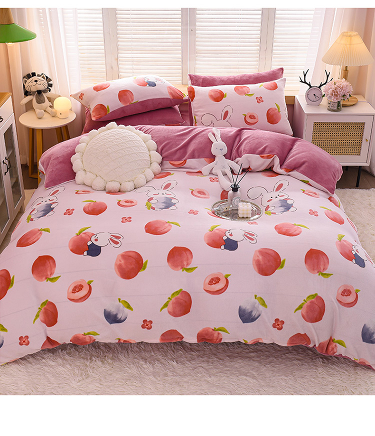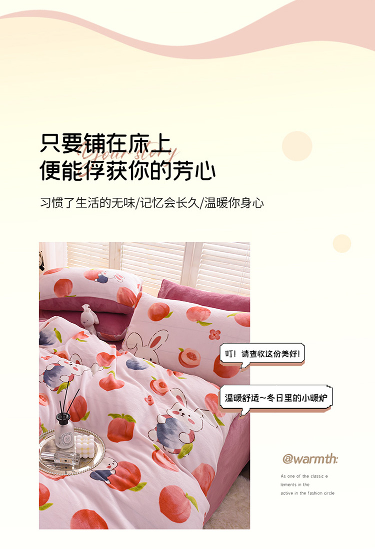 商品名称:芃成 2022新款加厚双面牛奶绒印花床品系列-四件套 萌兔