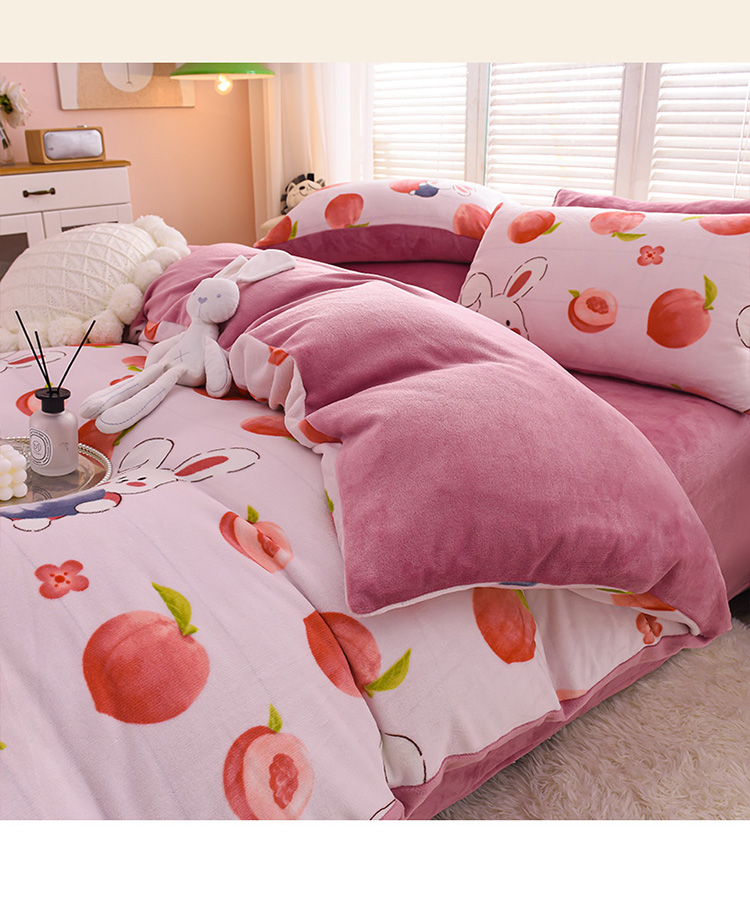 芃成 2022新款加厚双面牛奶绒印花床品系列-四件套 萌兔