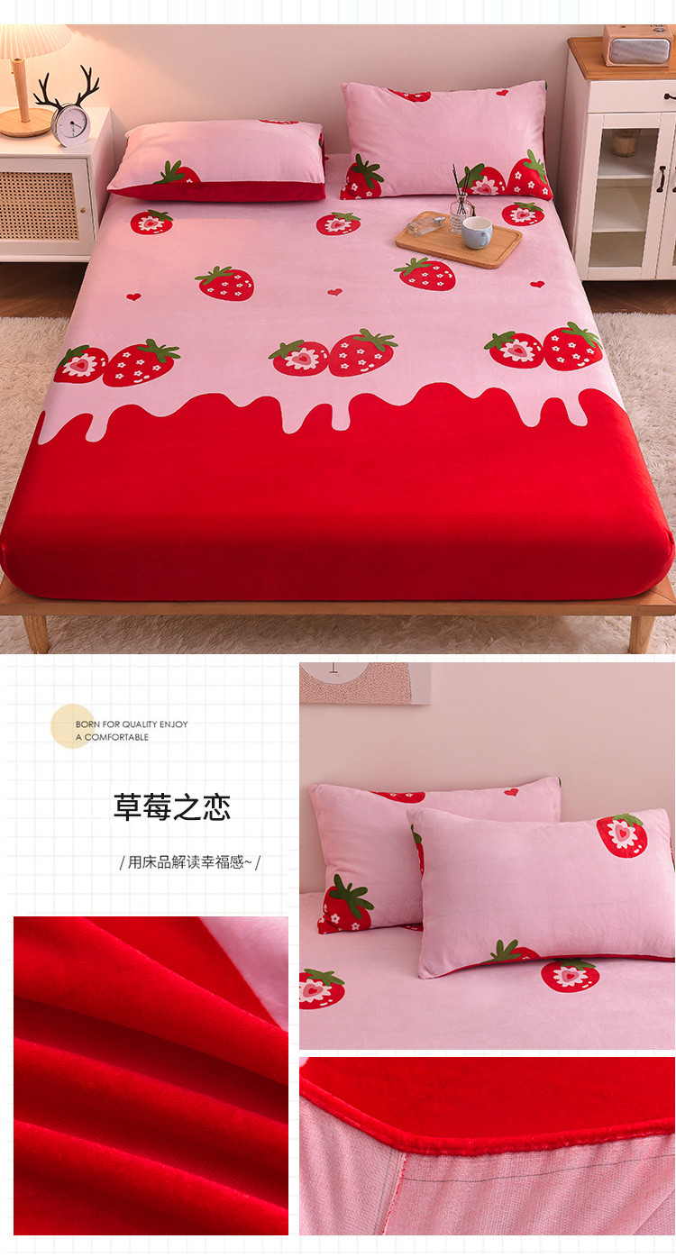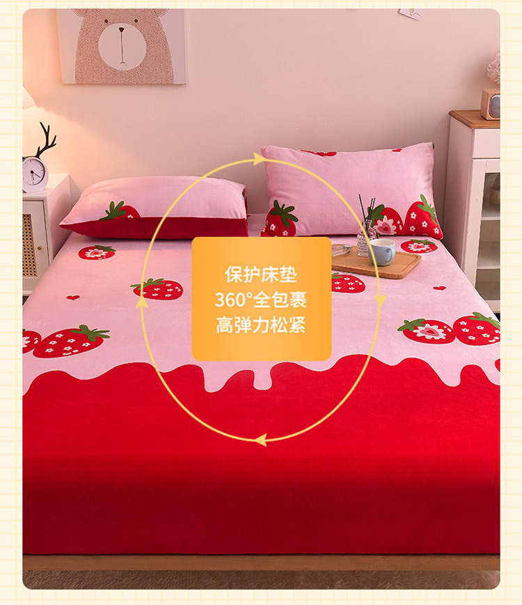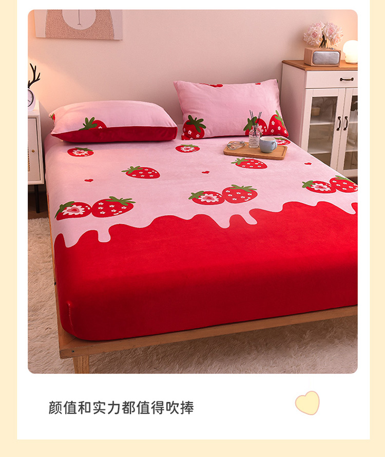 芃成 2022新款加厚双面牛奶绒印花床品系列-单床笠 草莓之恋
