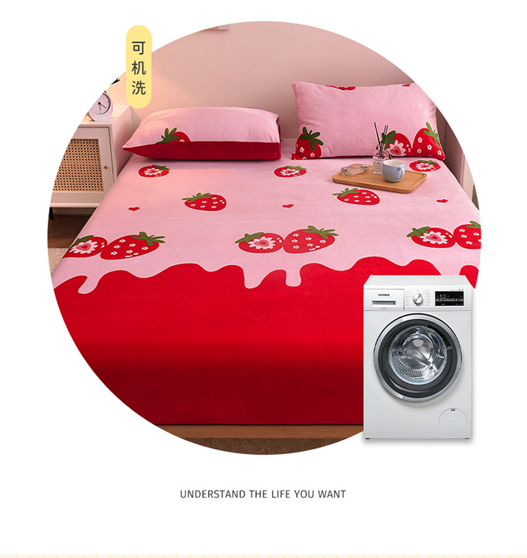 • 91家纺网 家纺一手货源 找家纺 芃成 2022新款加厚双面牛奶绒印花床品系列-单床笠 草莓之恋