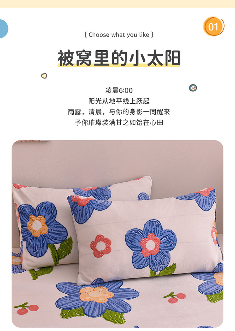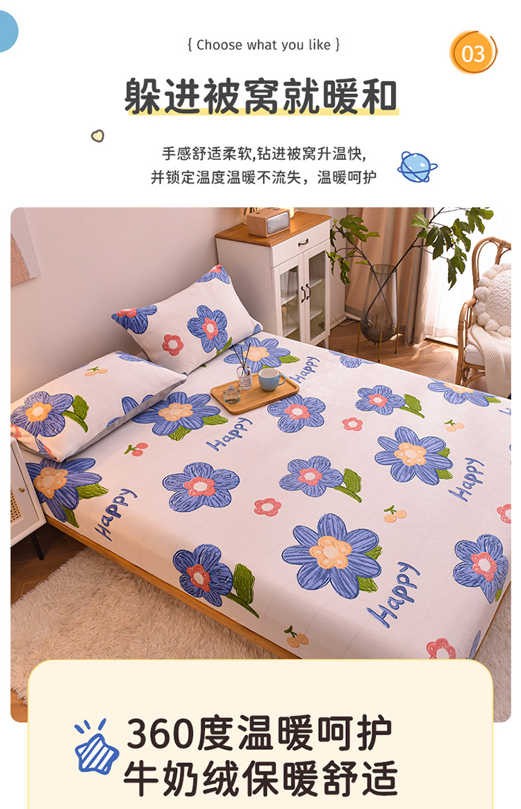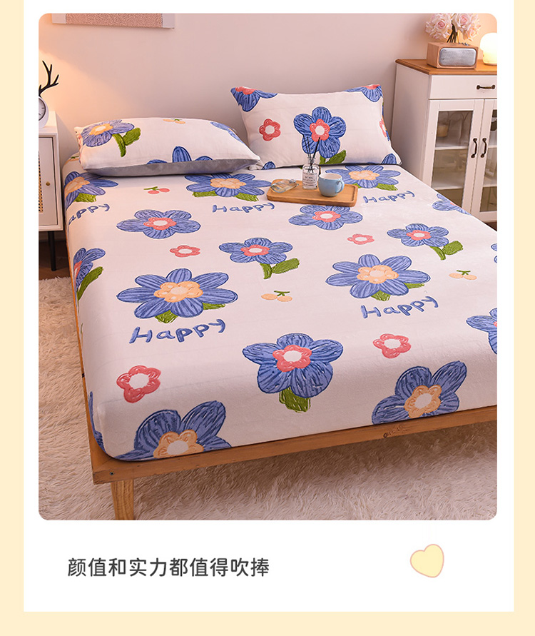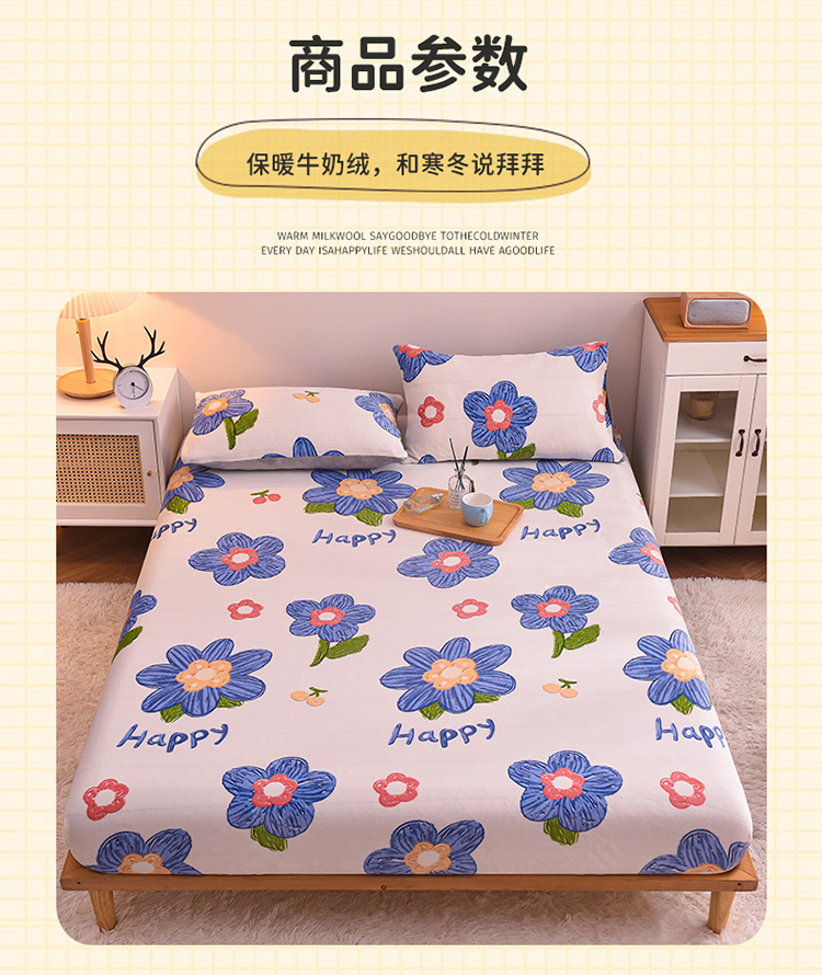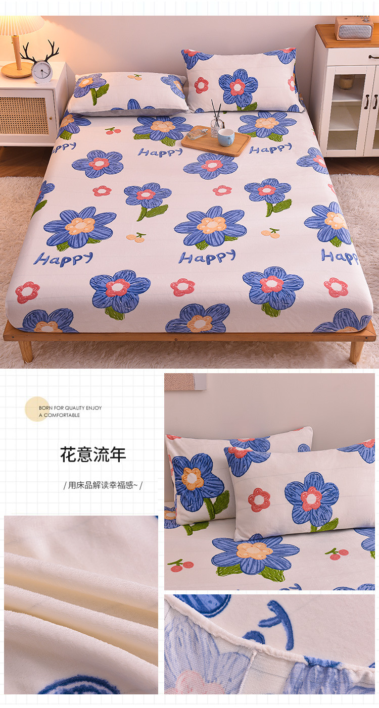 • 91家纺网 家纺一手货源 找家纺 芃成 2022新款加厚双面牛奶绒印花床品系列-单床笠花意流年