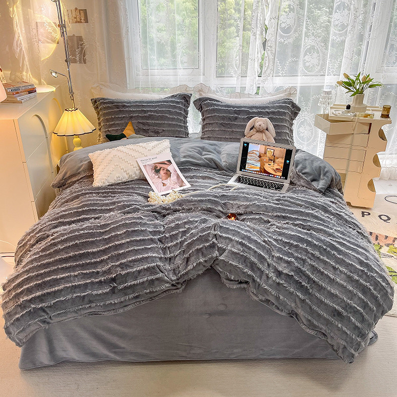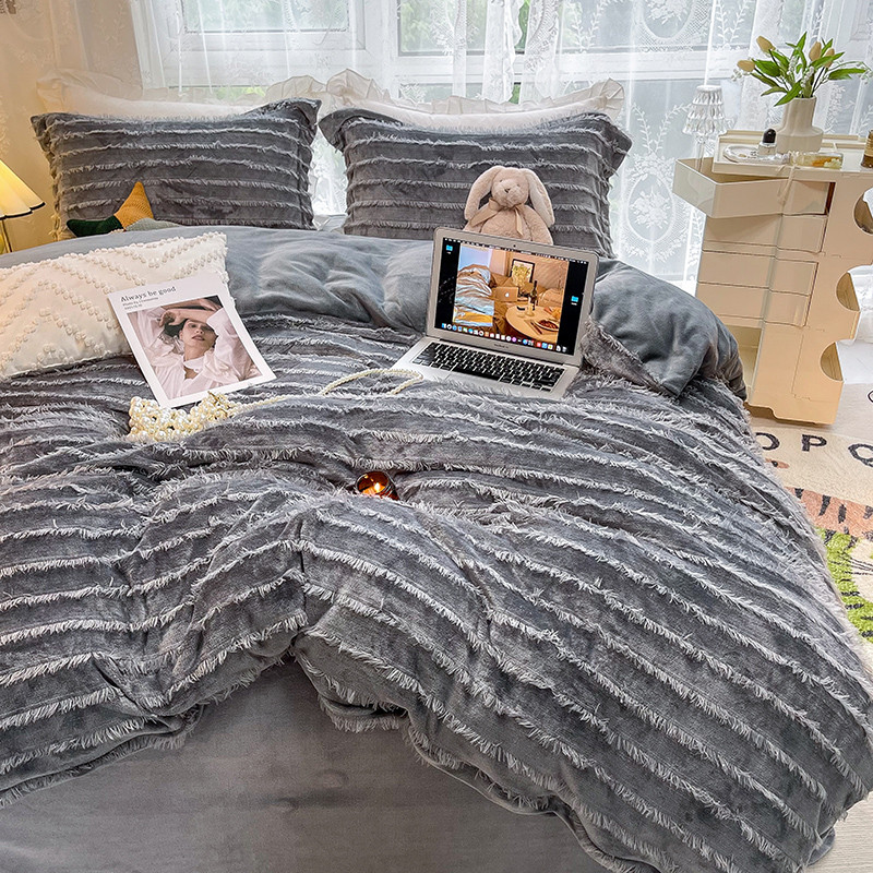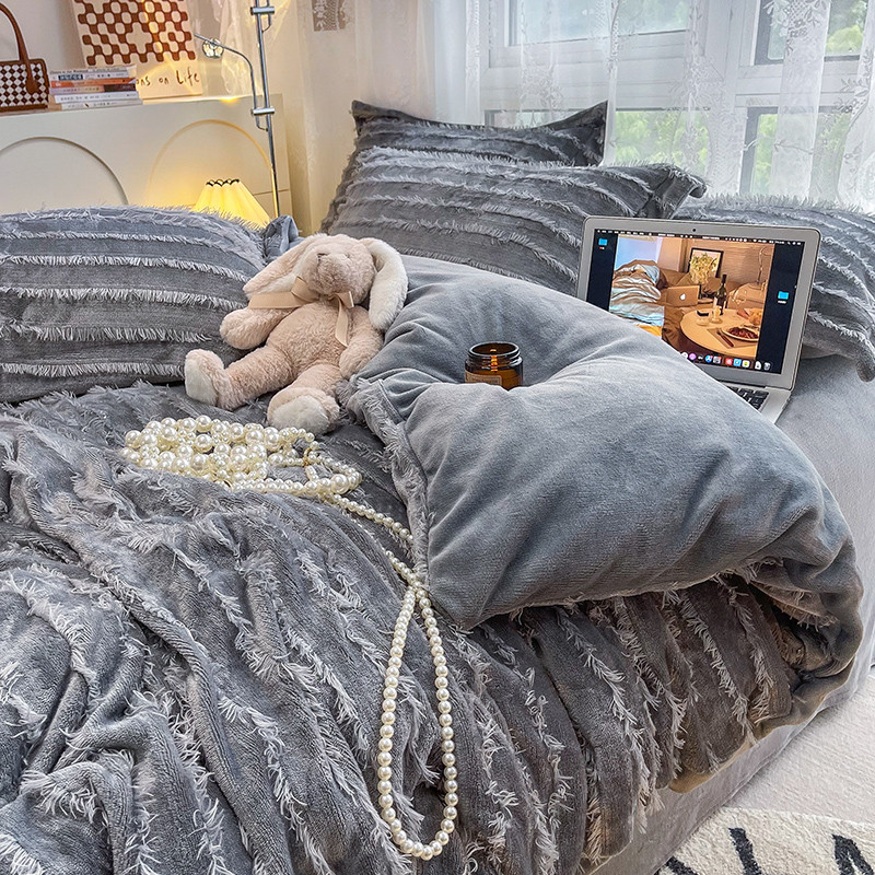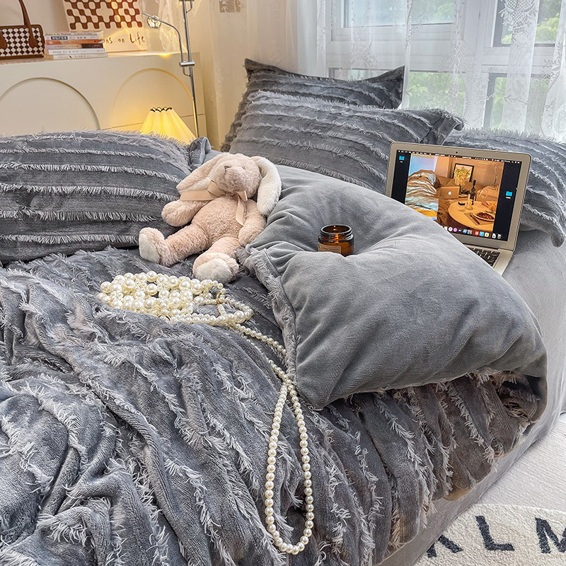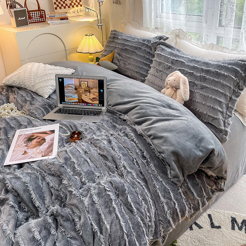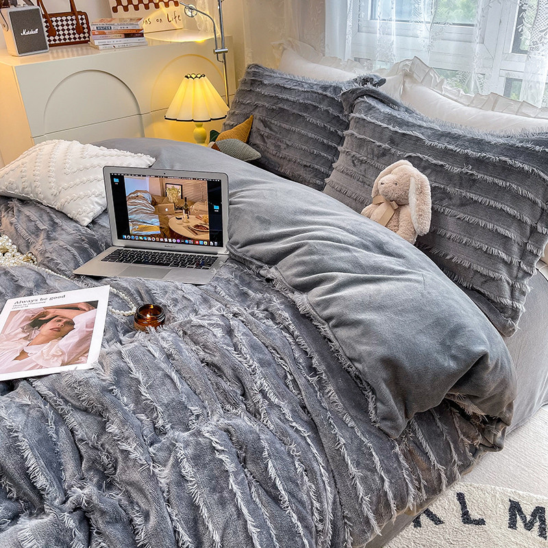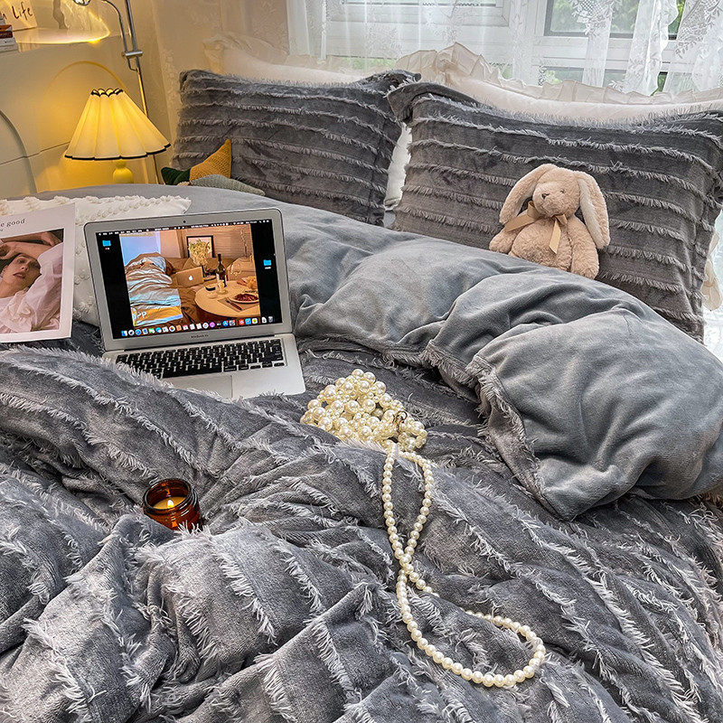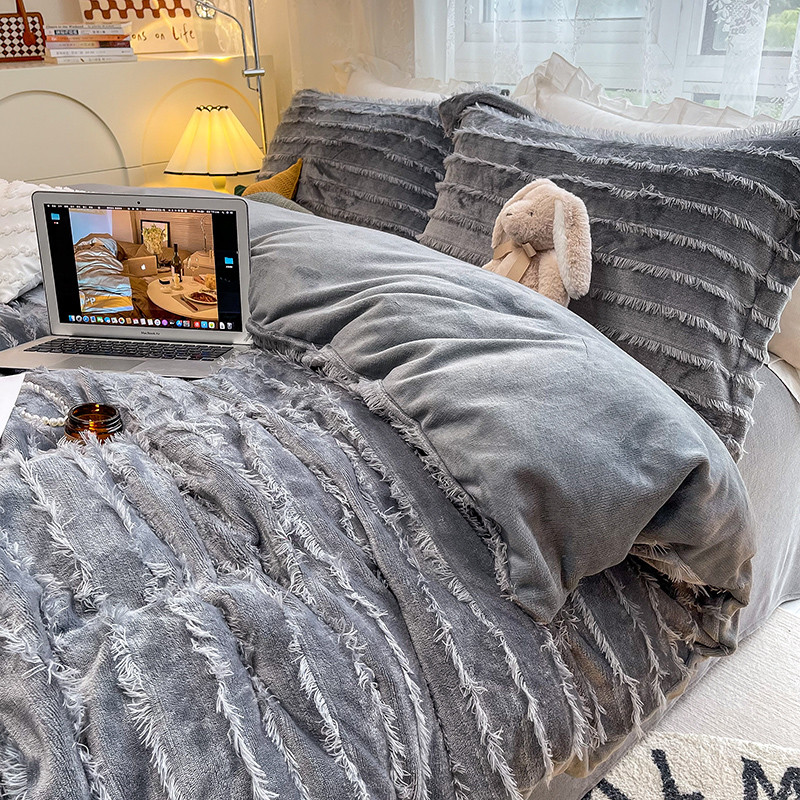 HL原创 2022新款流苏牛奶绒四件套 灰
