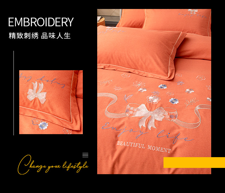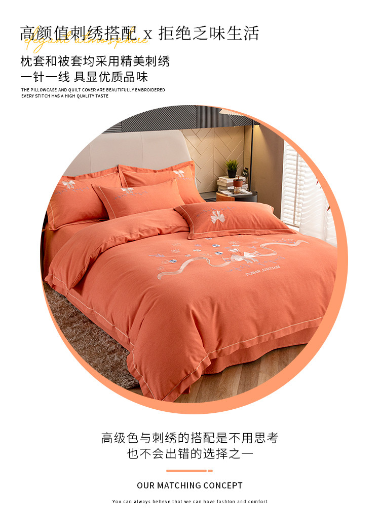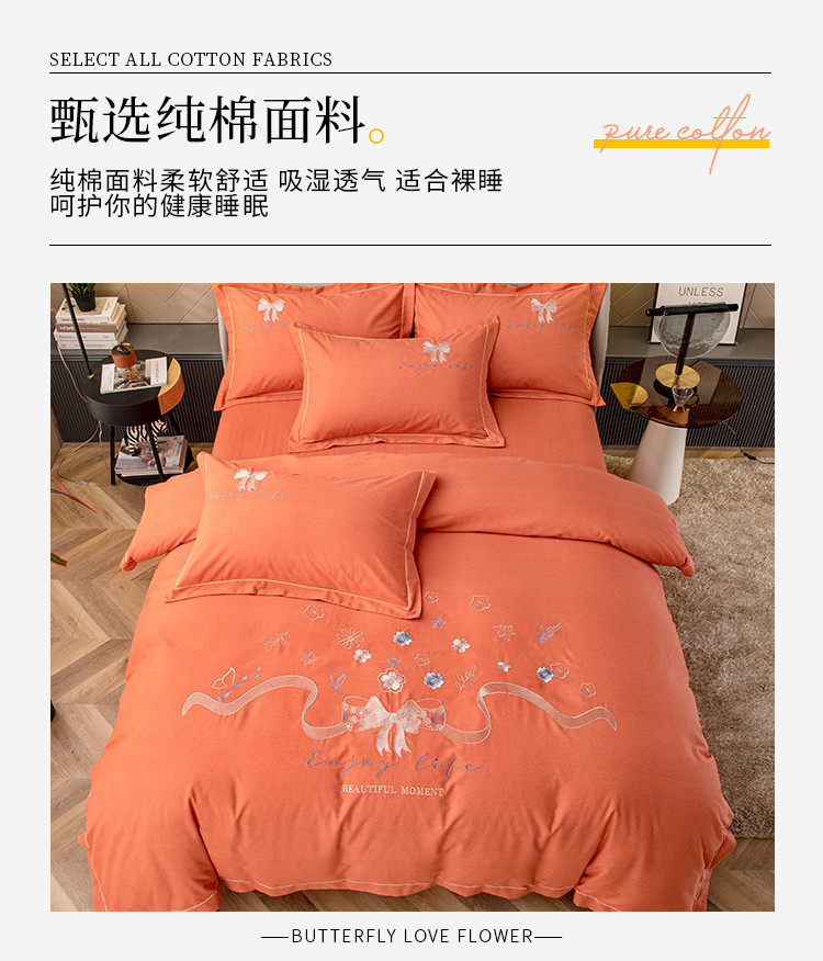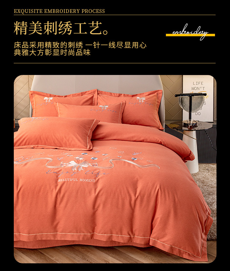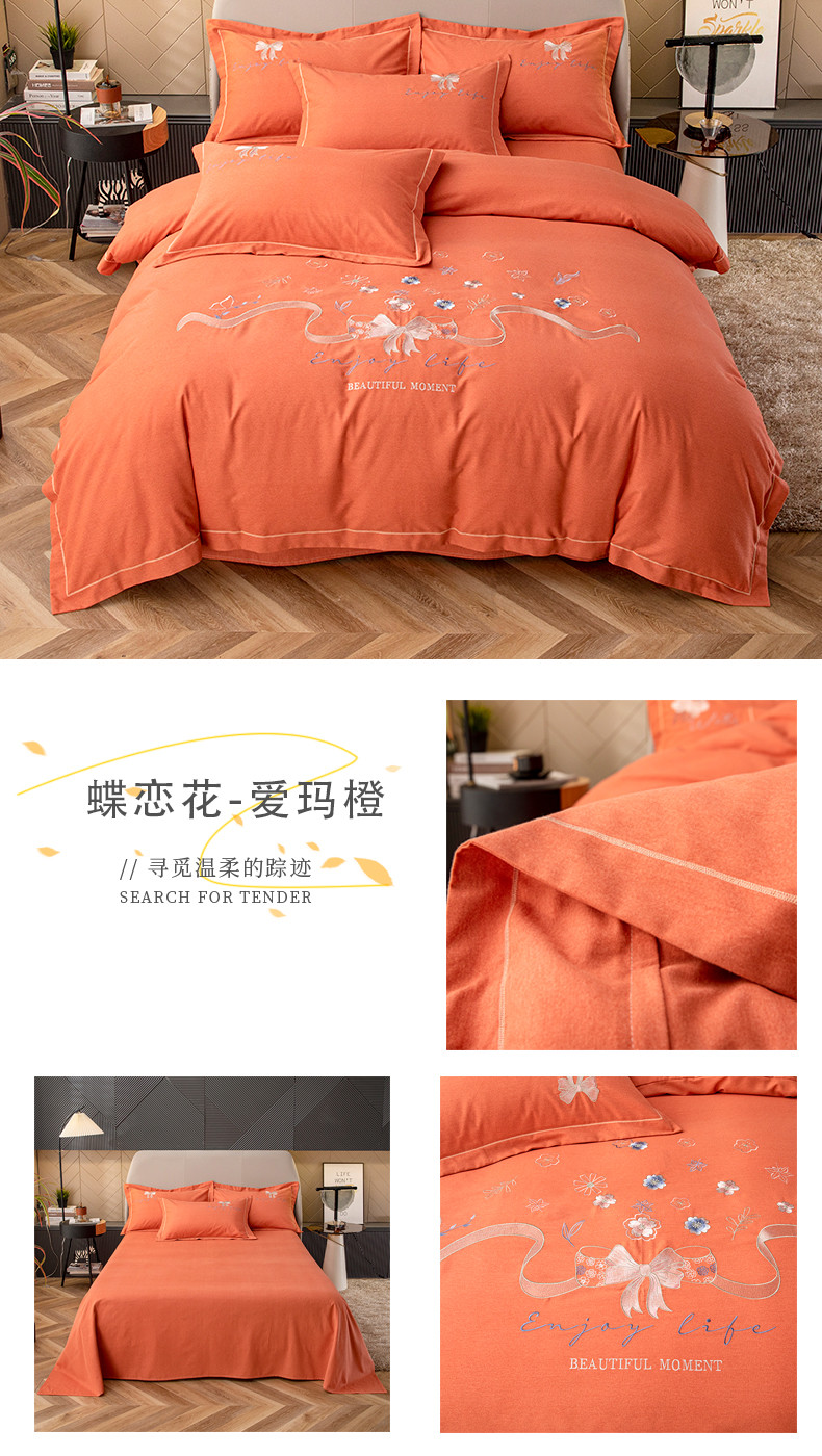 (总)纽缦 2022新款纯棉磨毛刺绣床单款四件套