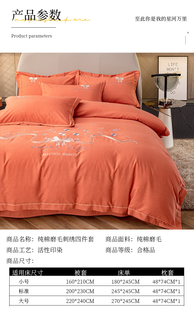 商品名称:(总)纽缦 2022新款纯棉磨毛刺绣床单款四件套