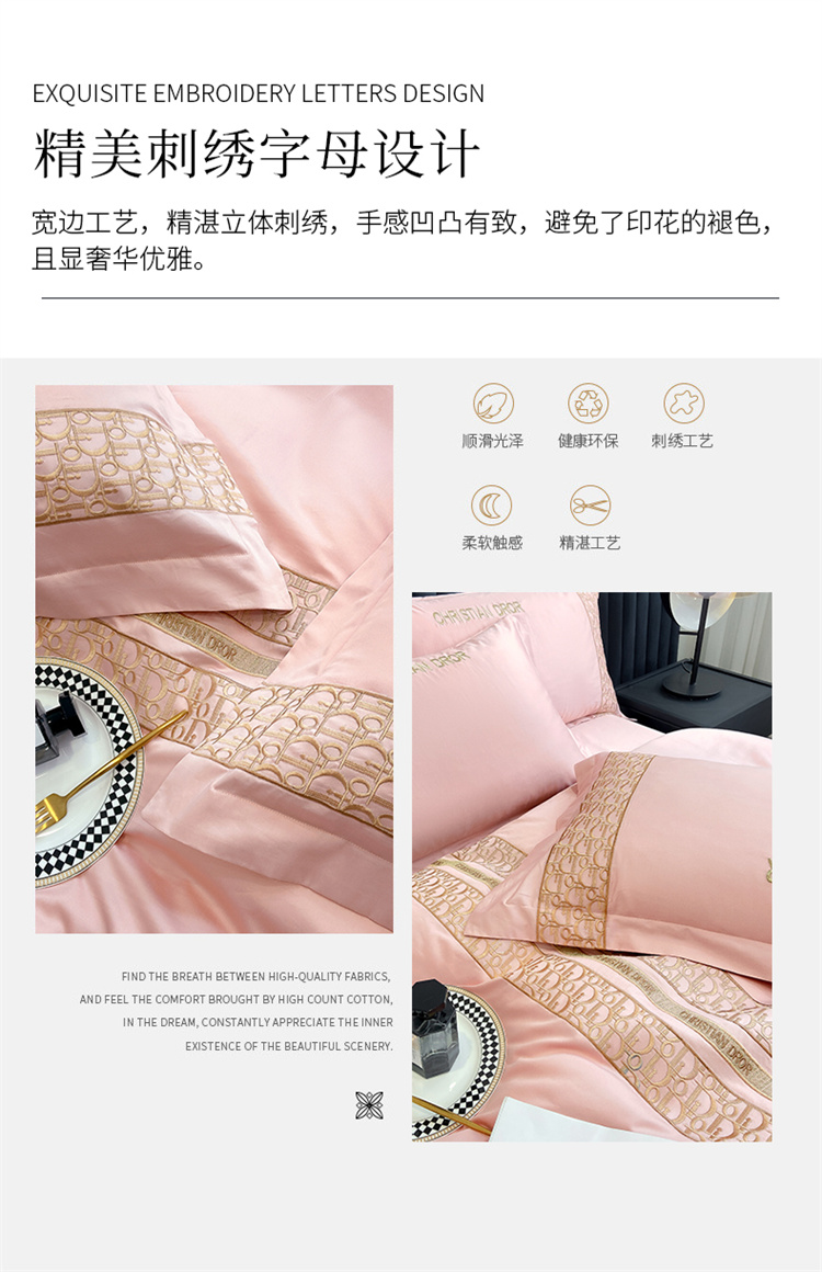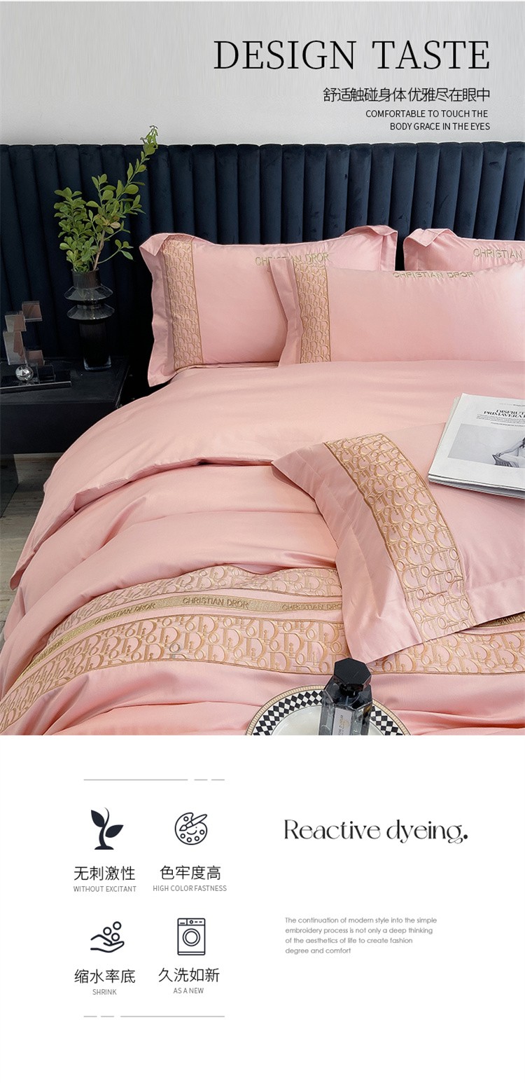 商品名称:双面100纯棉刺绣花四件套长绒棉床单被套全棉轻奢大牌风直播