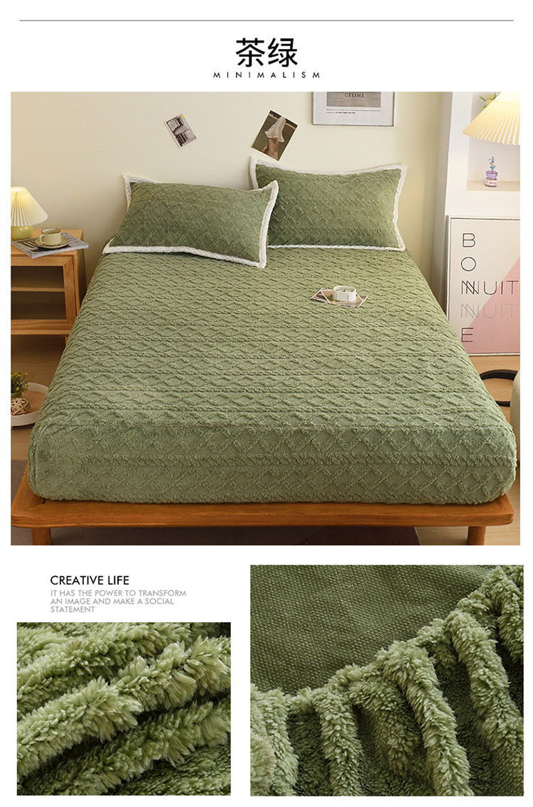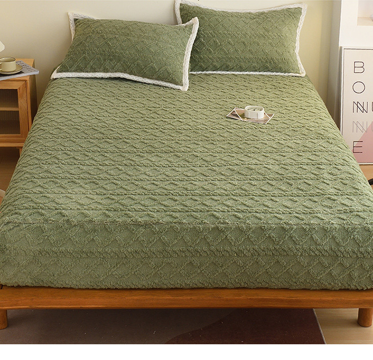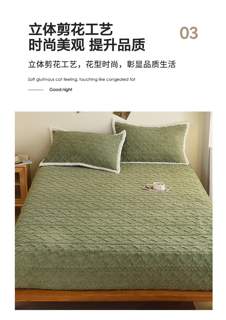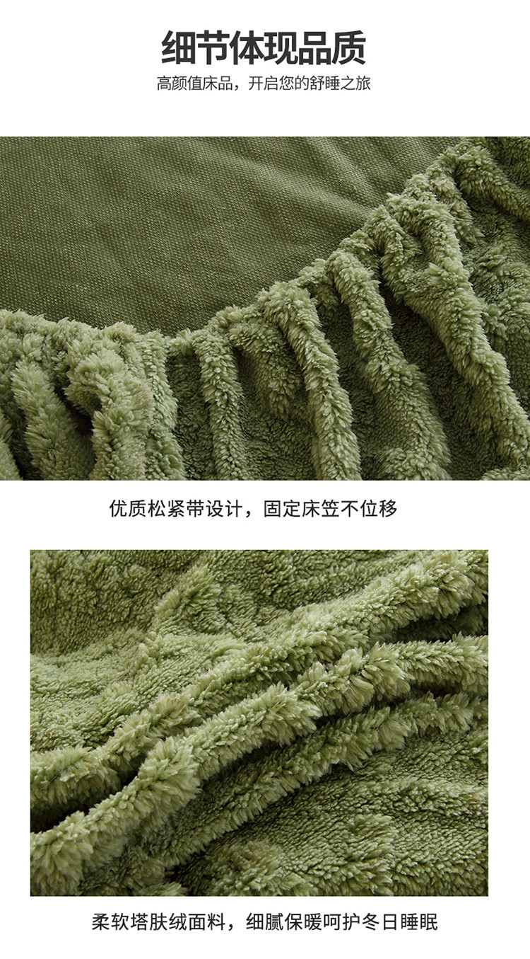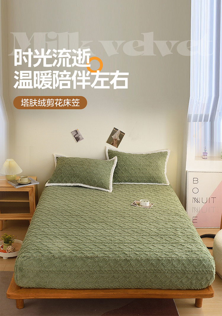 商品名称:启优 2022新款高克重温暖塔芙绒剪花床笠 茶绿