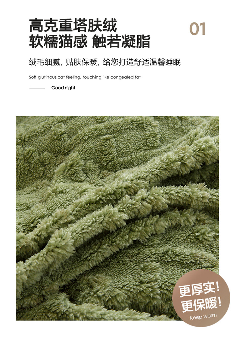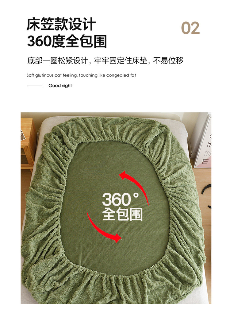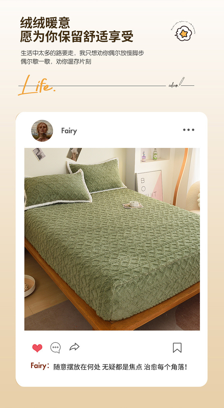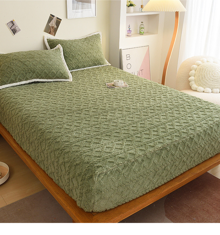 商品名称:启优 2022新款高克重温暖塔芙绒剪花床笠 茶绿
