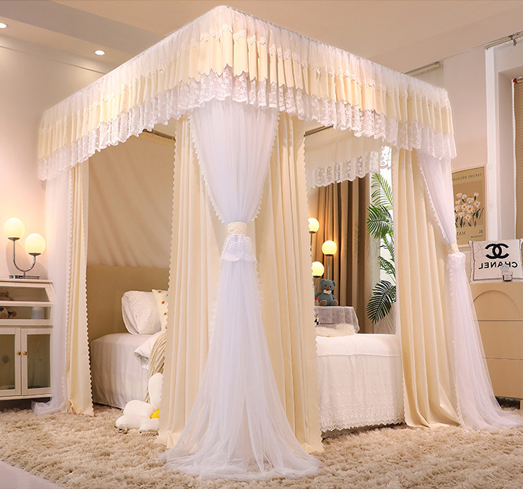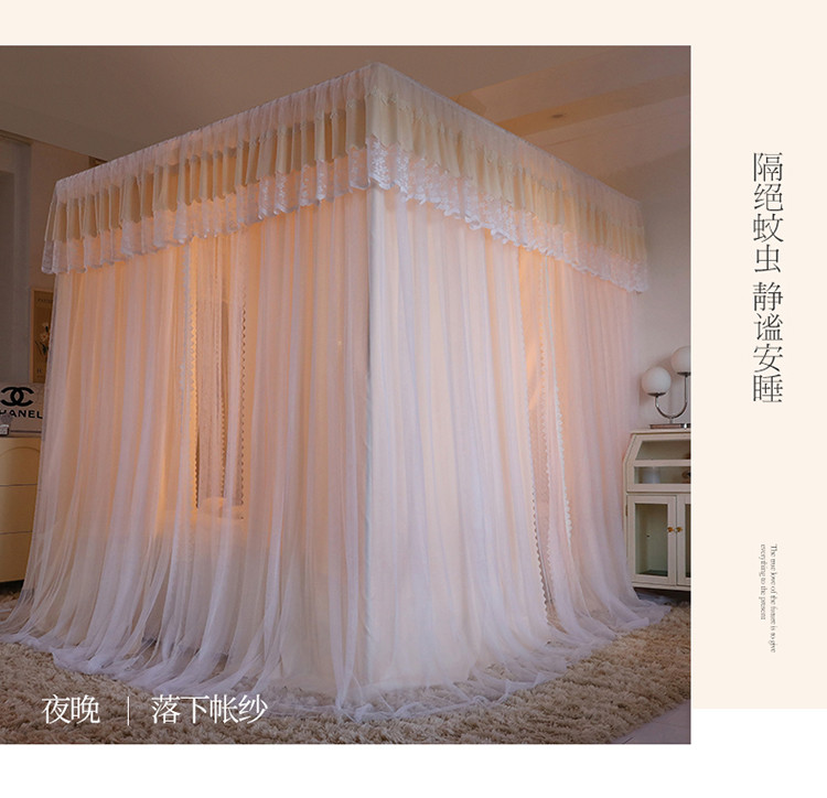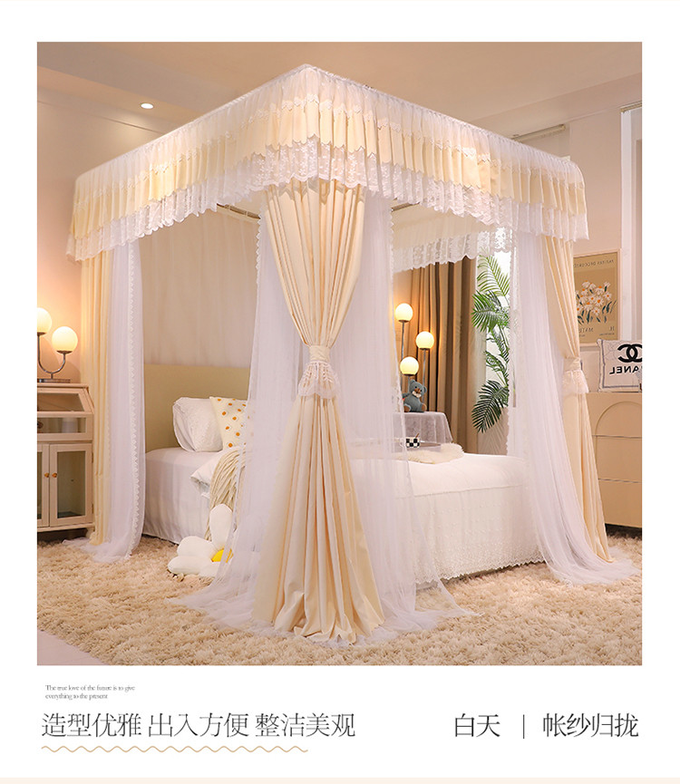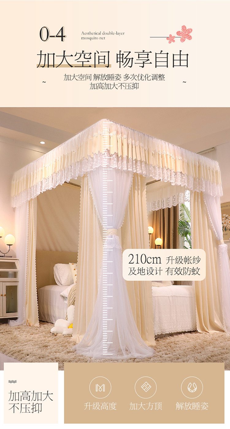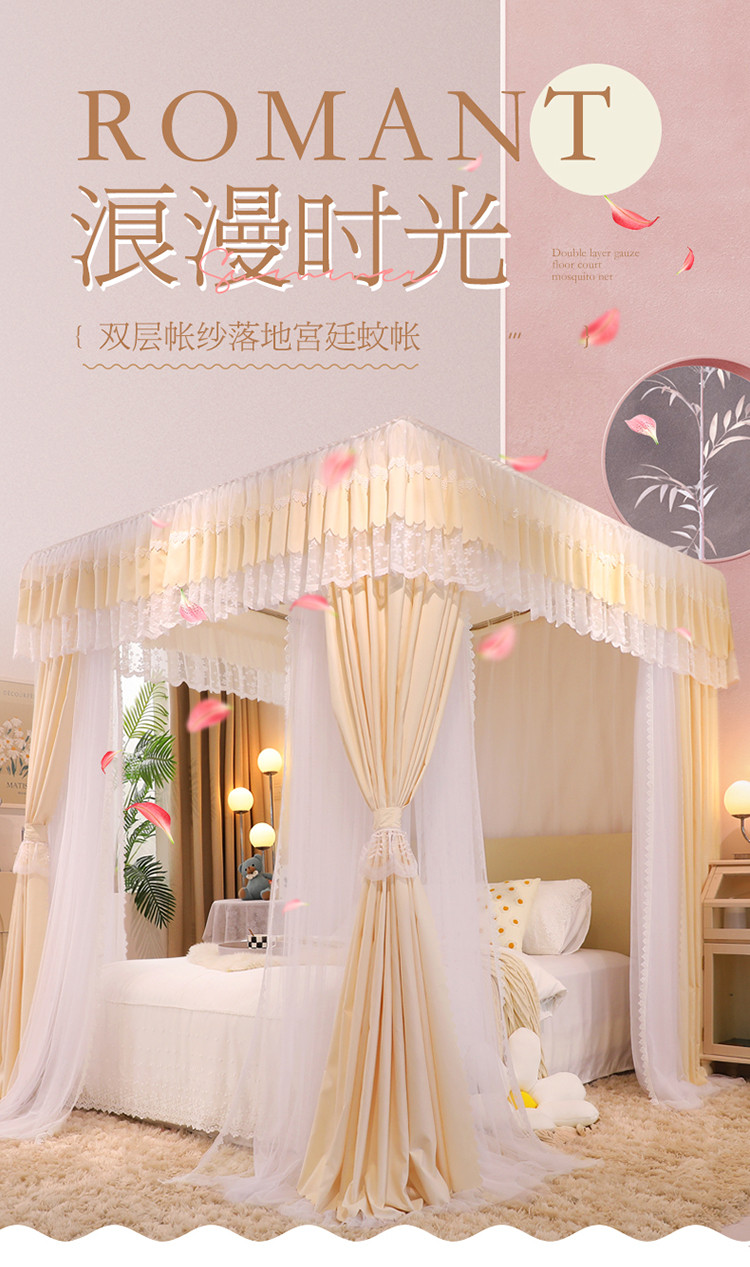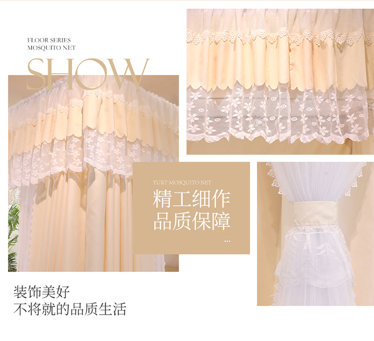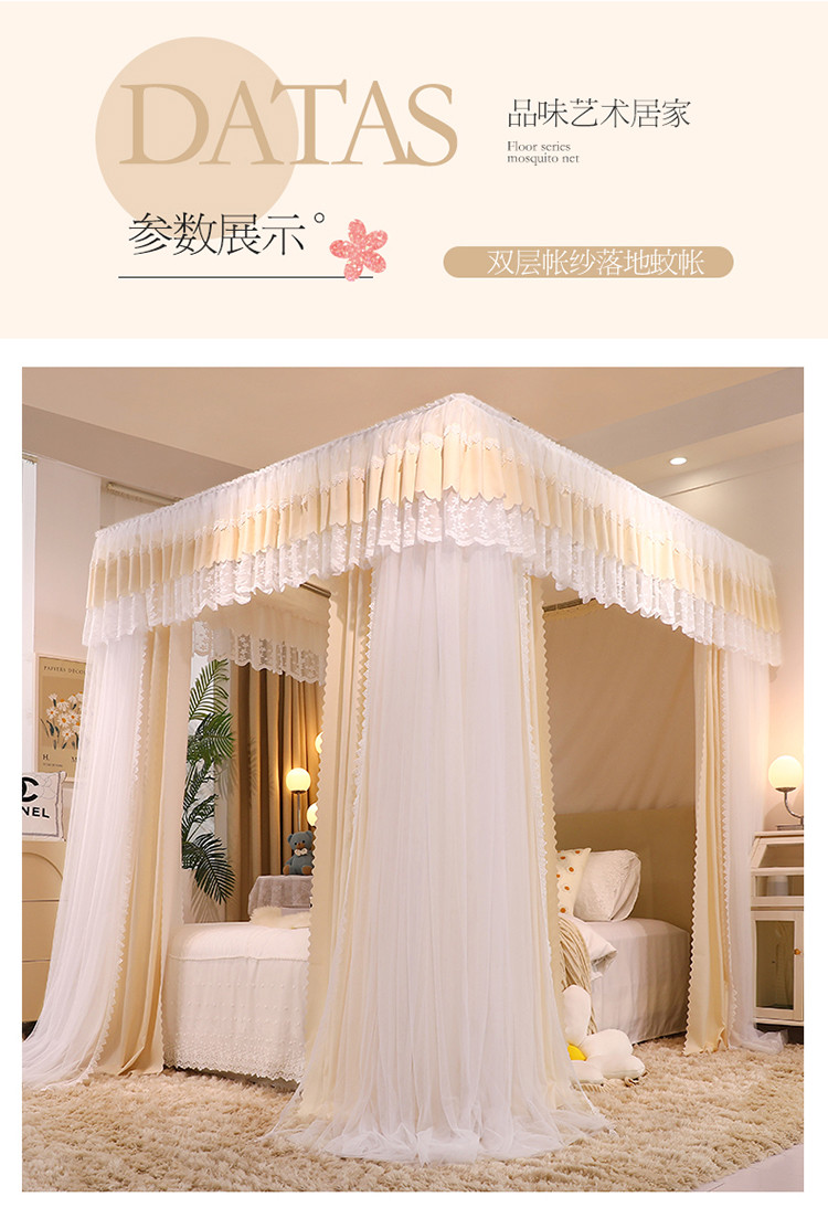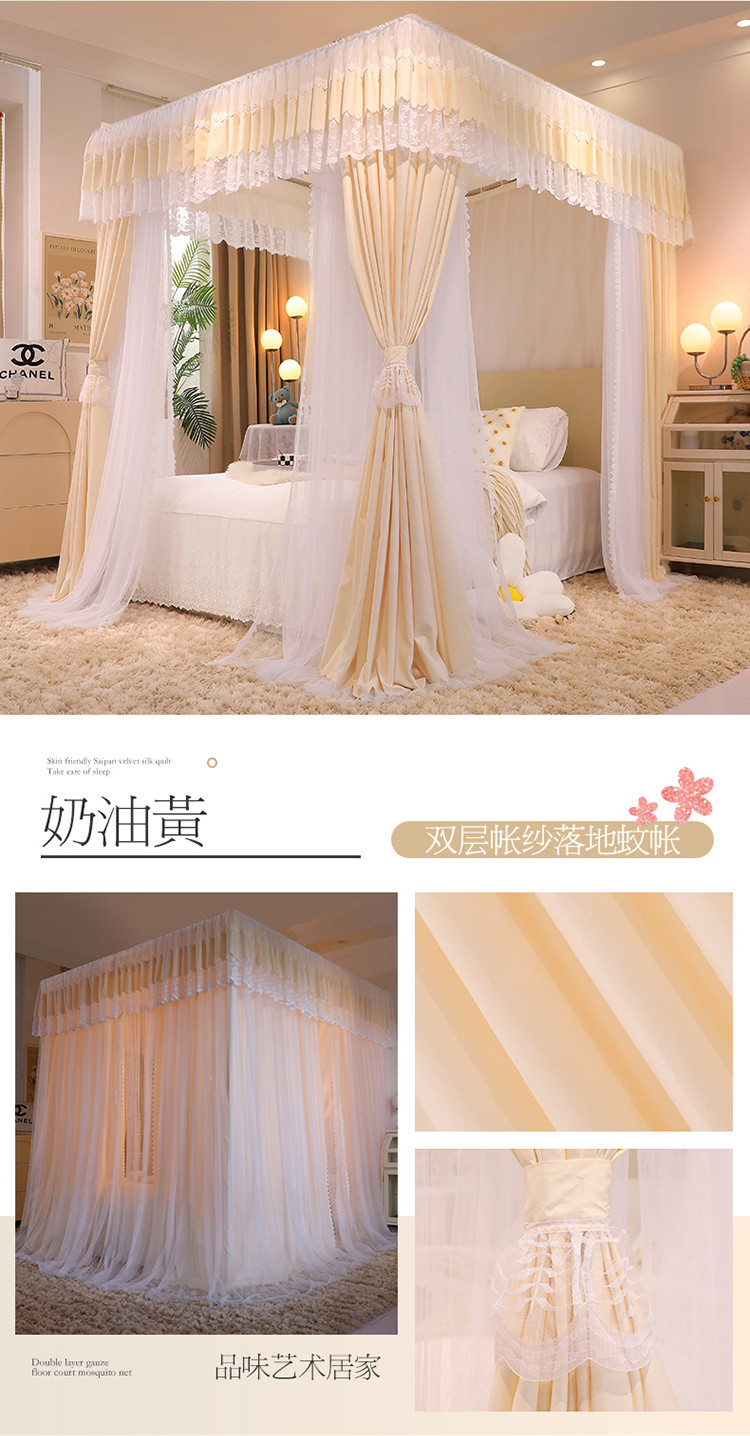 商品名称:艾晶美 2022新款双杆双层奶油风床幔蚊帐 奶油黄
