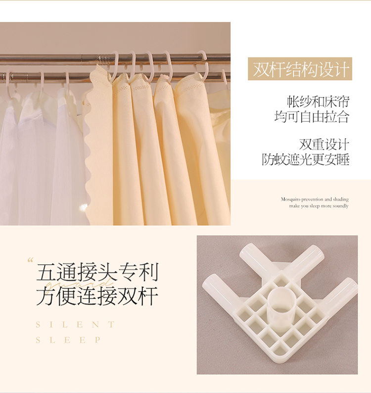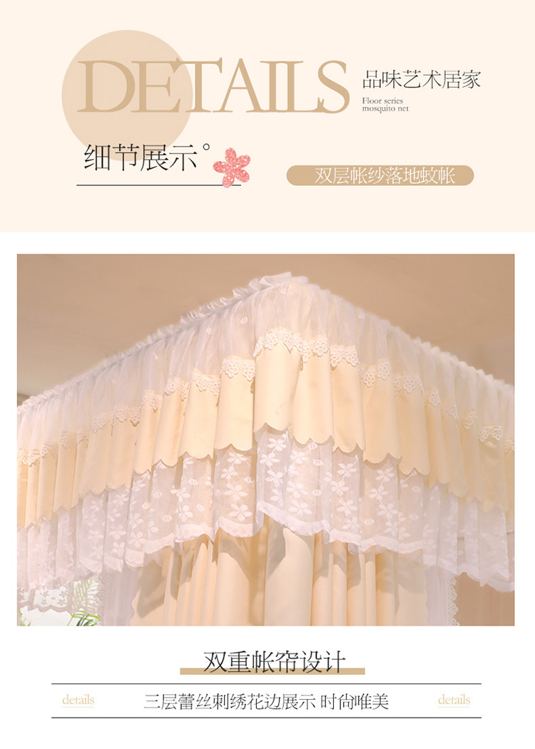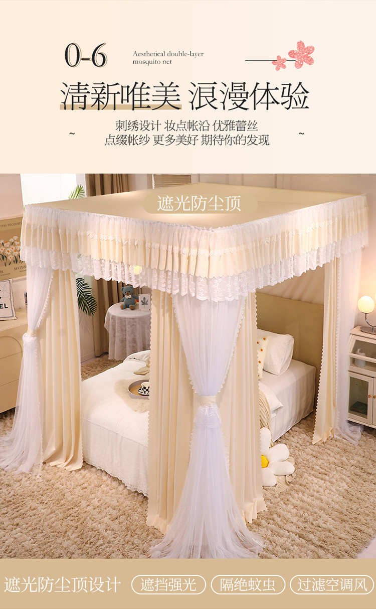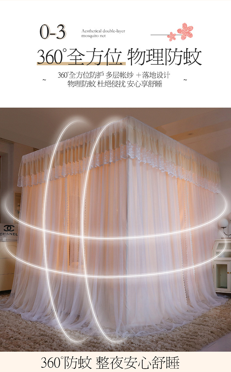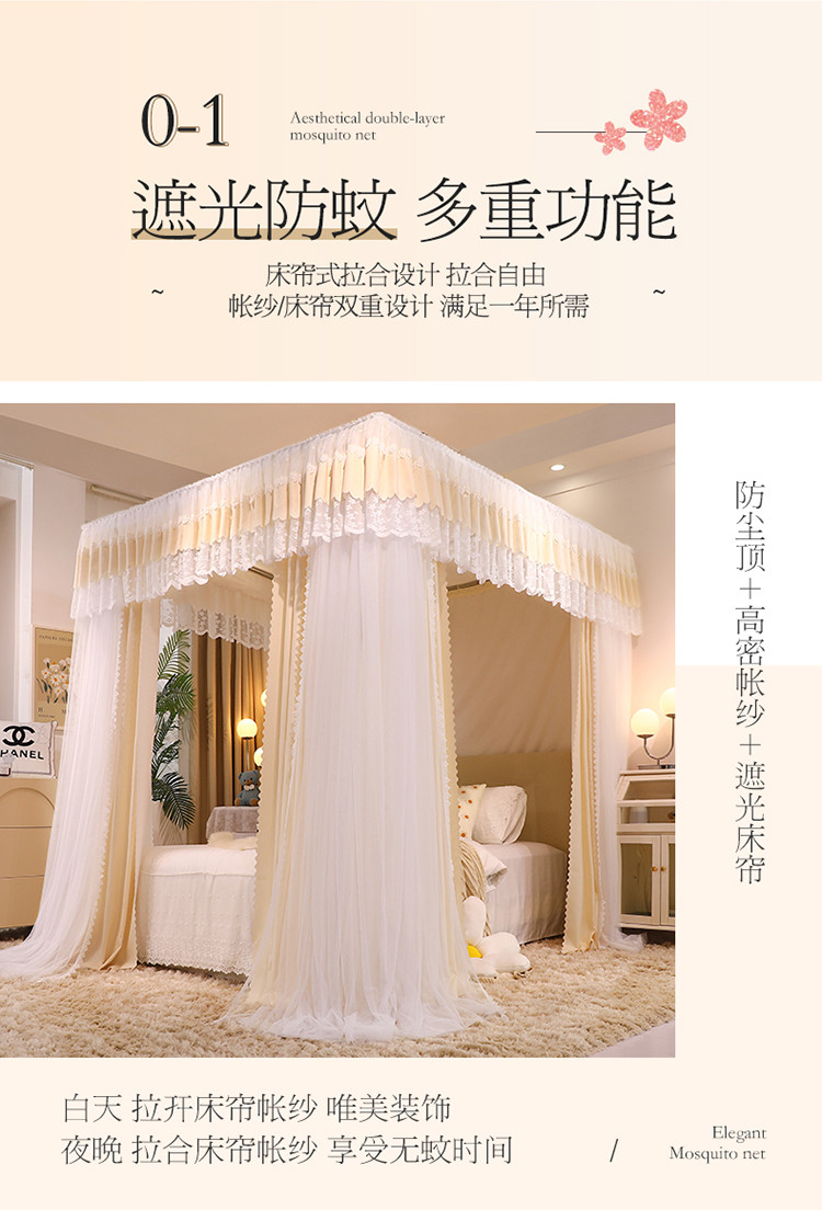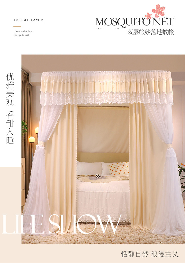 (总)艾晶美家纺有限公司 2025新款新中风双层双杆5面遮光落地宫廷蚊帐,粉枝花影,寒梅映阁,花簇橘裳,兰枝映月,云纱梦境,竹韵绕阁