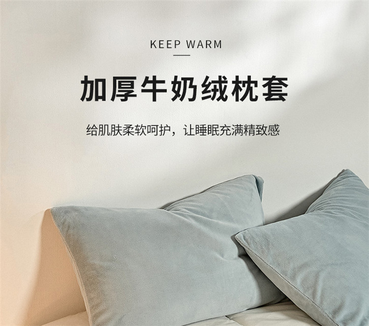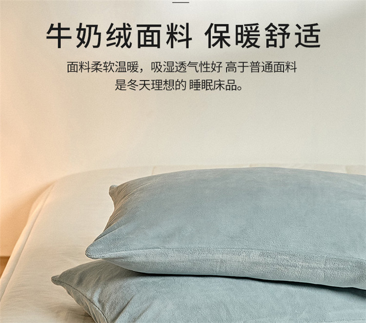 新款纯色230g牛奶绒枕套 玉石蓝灰 48*74cm/只