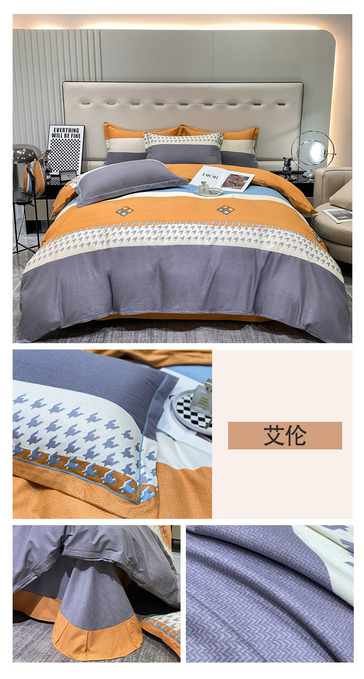 金纱玉纺 2023新款全棉加厚磨毛四件套 艾伦