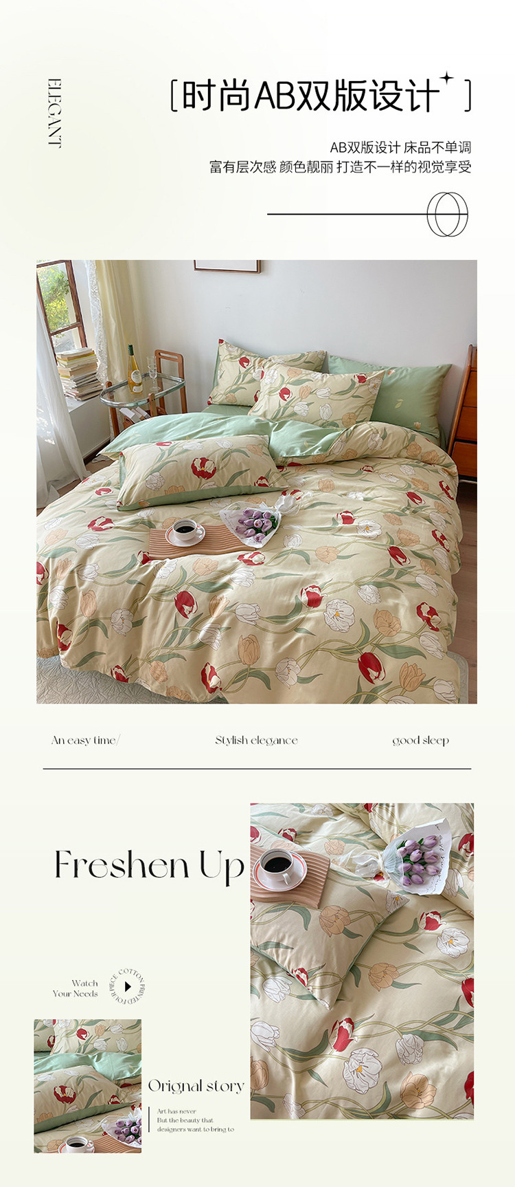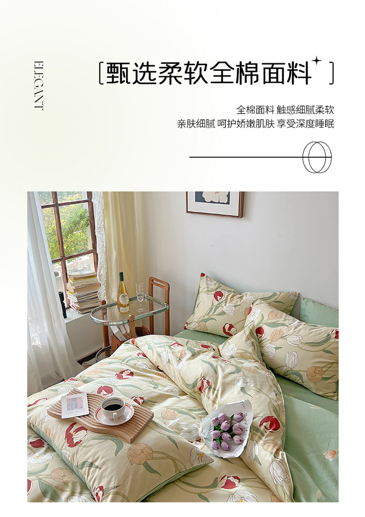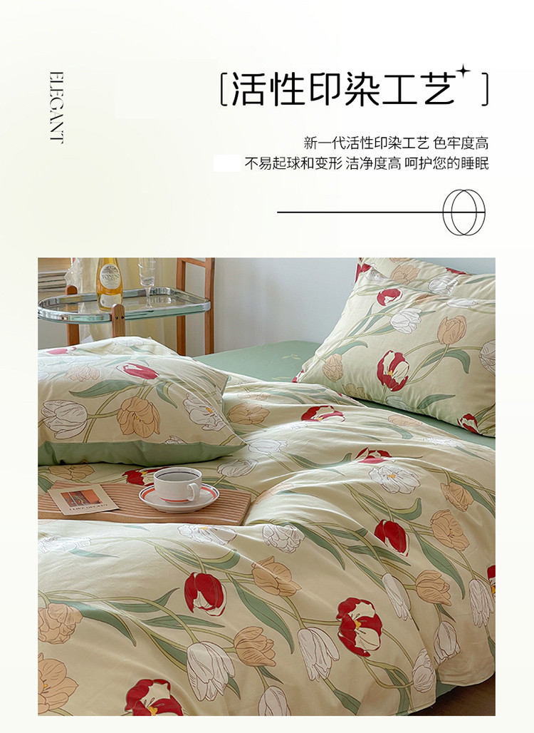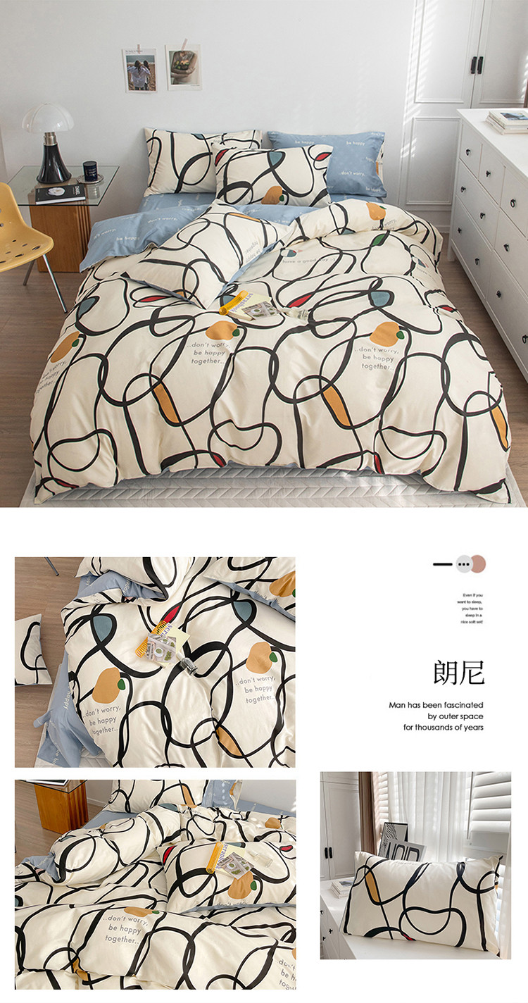 (总新)呗旺鹿 2023新款13372舒适极简休闲风全棉纯棉印花四件套