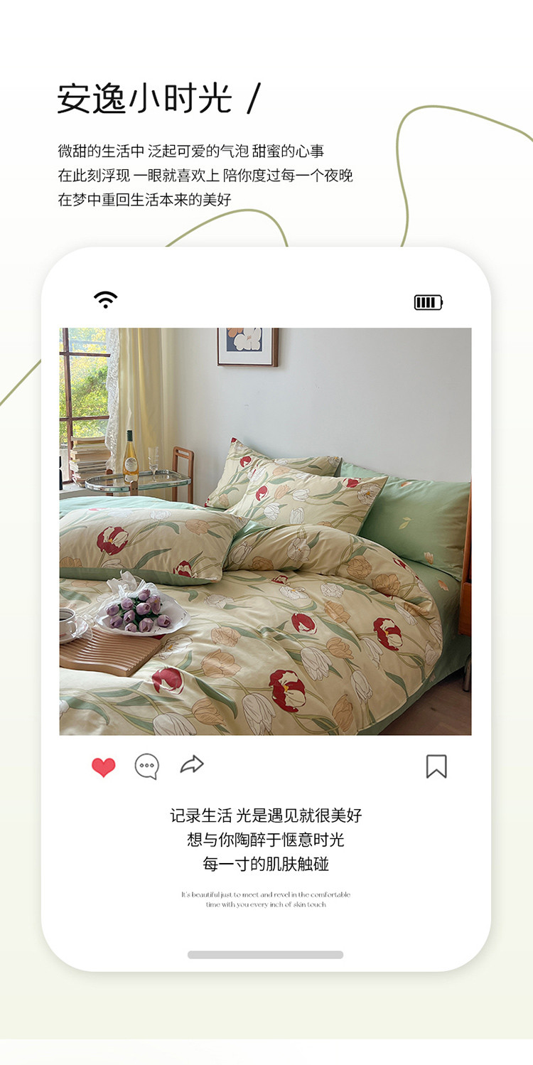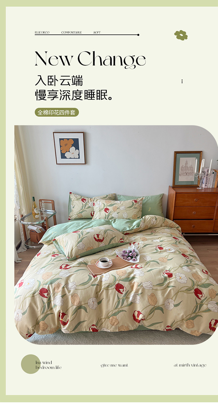 商品名称:(总新)呗旺鹿 2023新款13372舒适极简休闲风全棉纯棉印花四件套