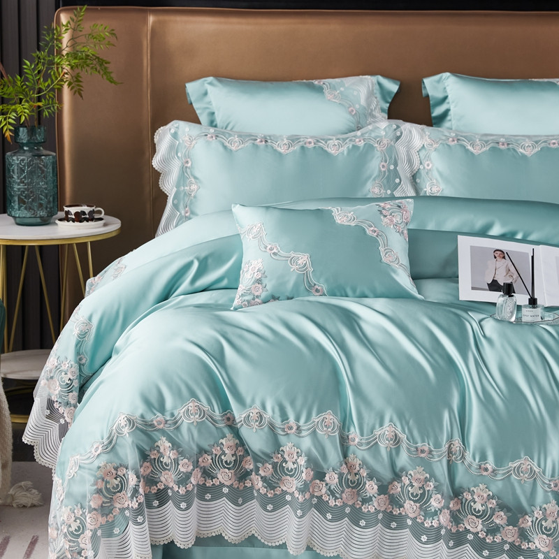 当前位置: 91家纺网 > 商品网购 > 床品套件 > 四件套 > 全棉普通四件套 > 缔缦 2023新款安娜系列高端居家轻奢真丝棉四件套 安娜-水绿