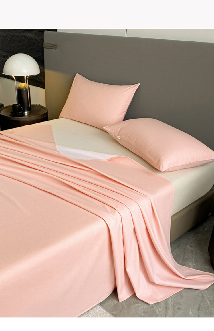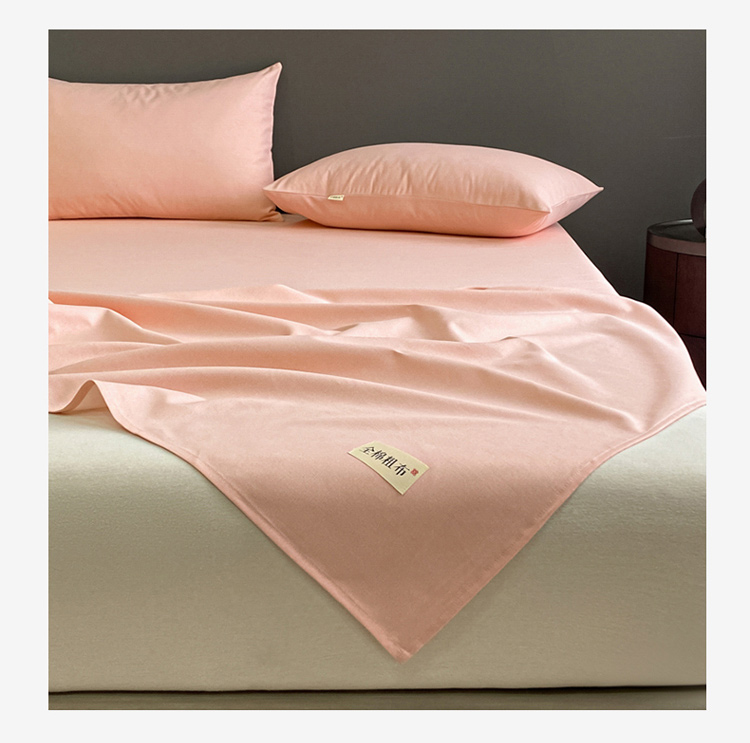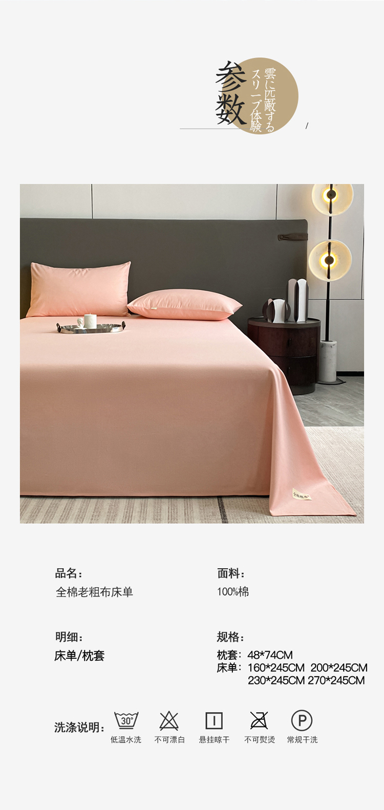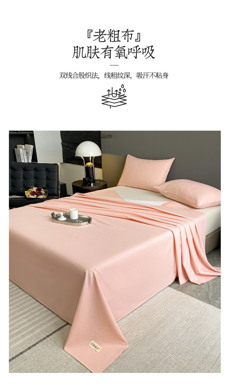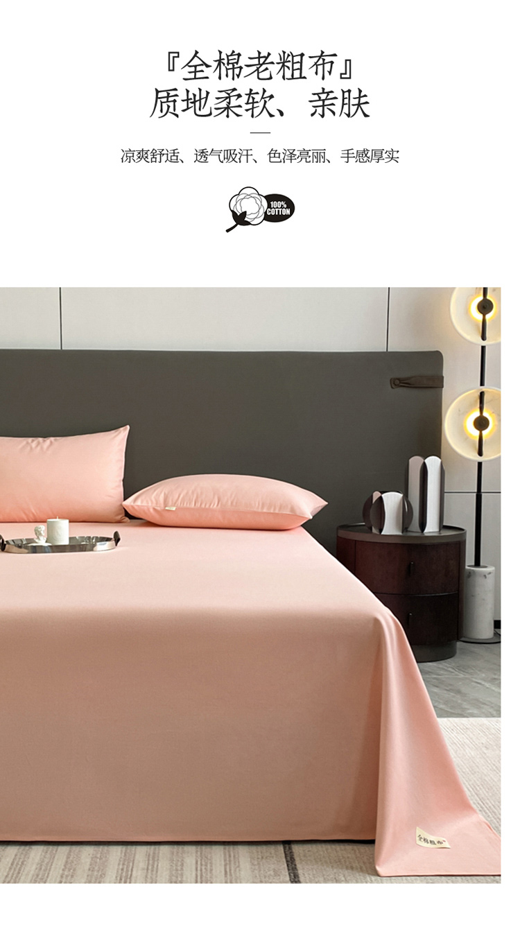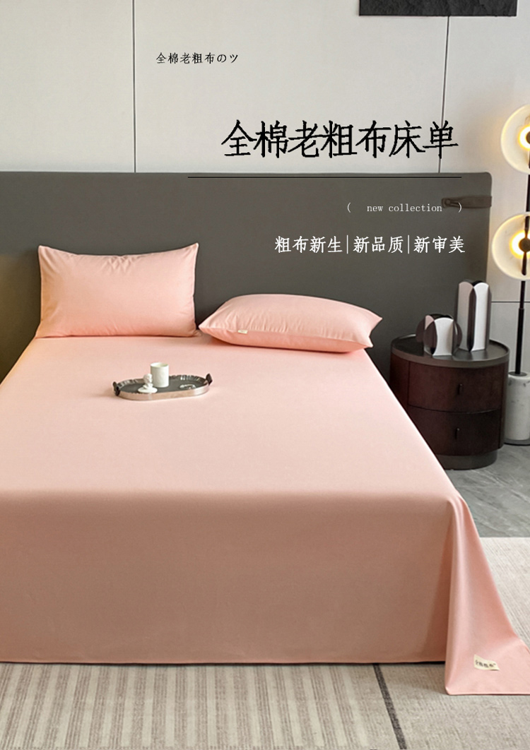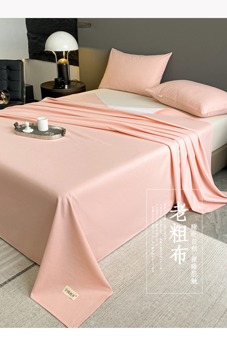 卧趣家纺 2023新款全棉老粗布单品系列单床单 月白-粉
