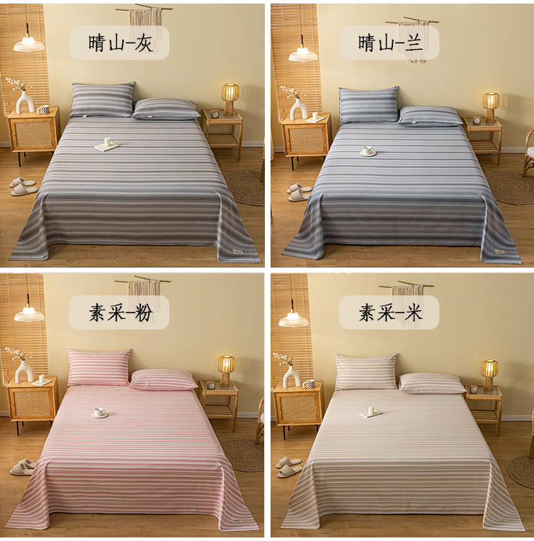 商品名称:卧趣家纺 2023新款全棉老粗布单品系列单床单 月白-粉
