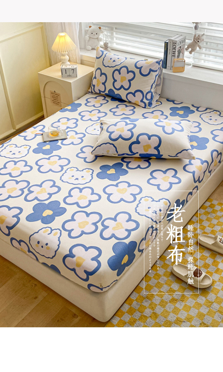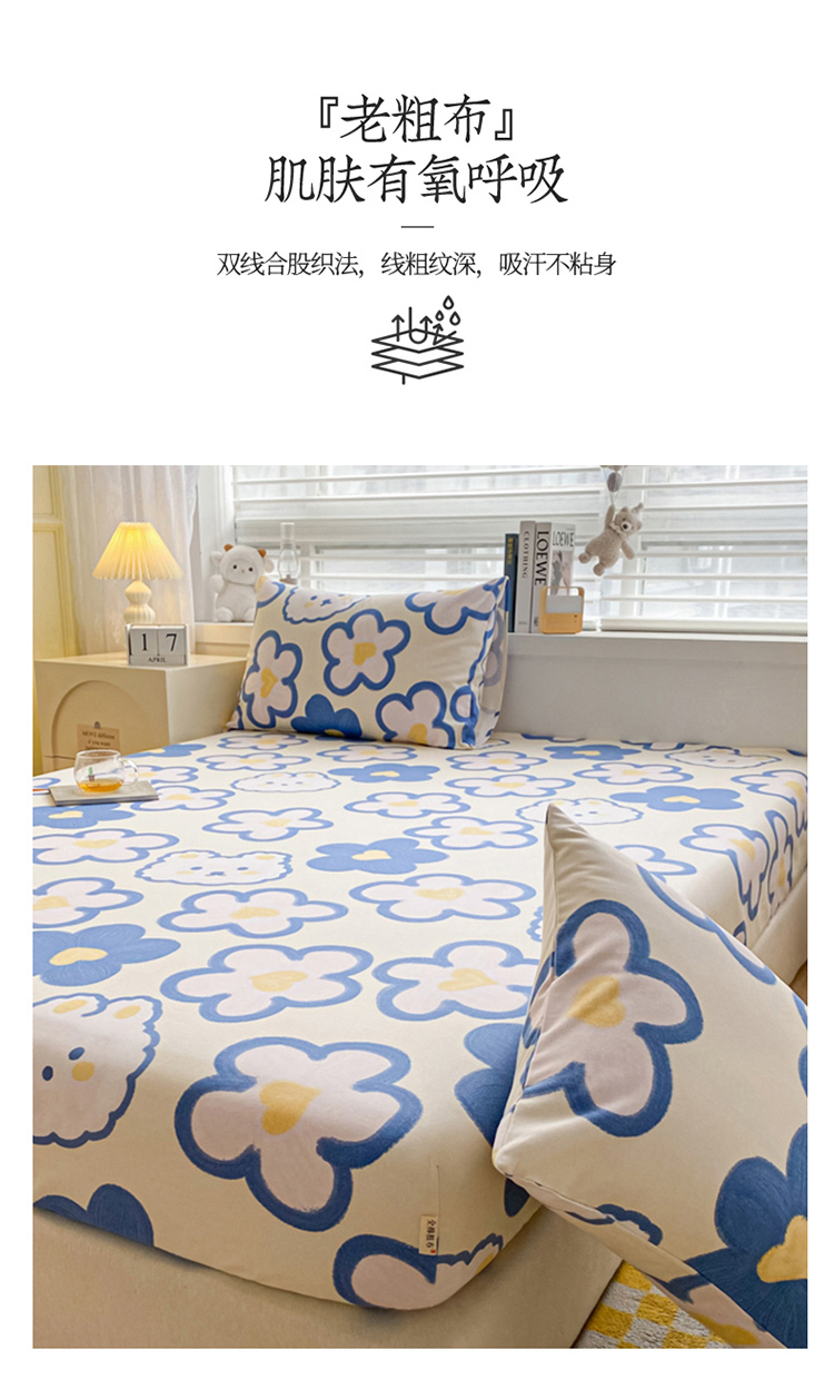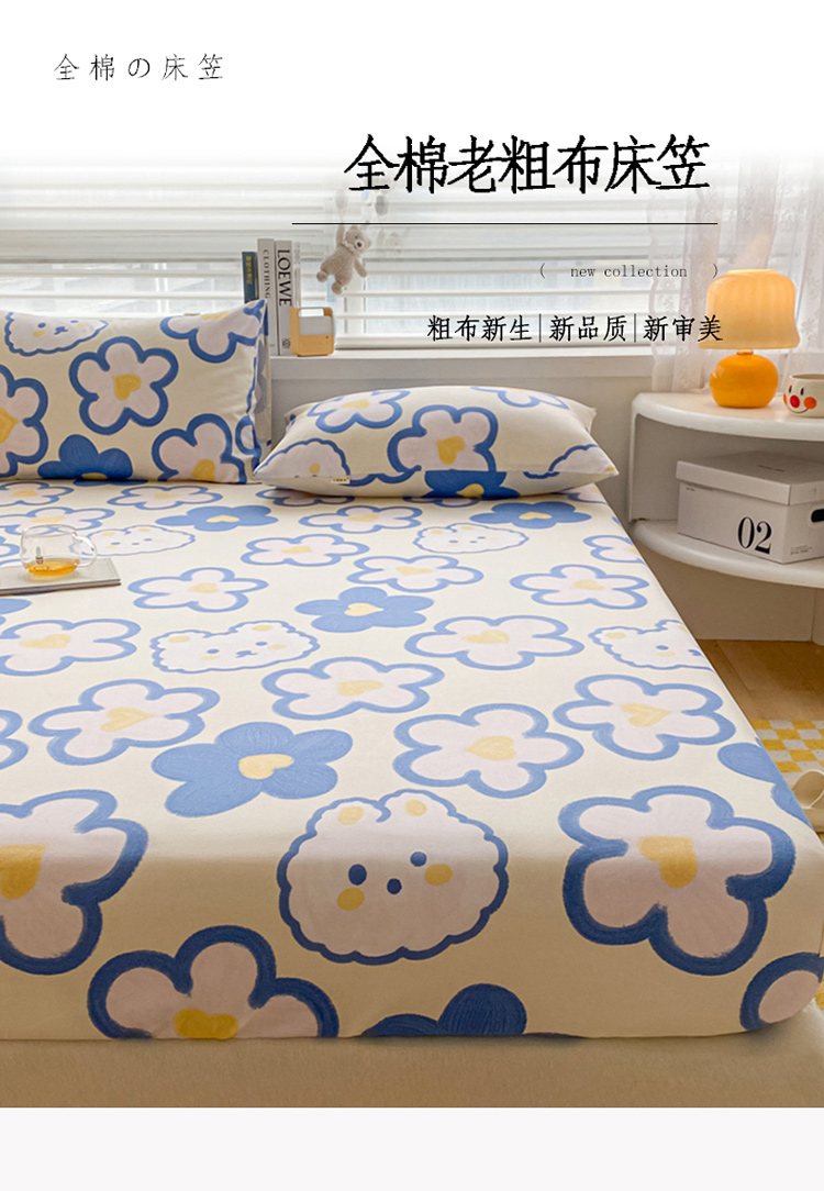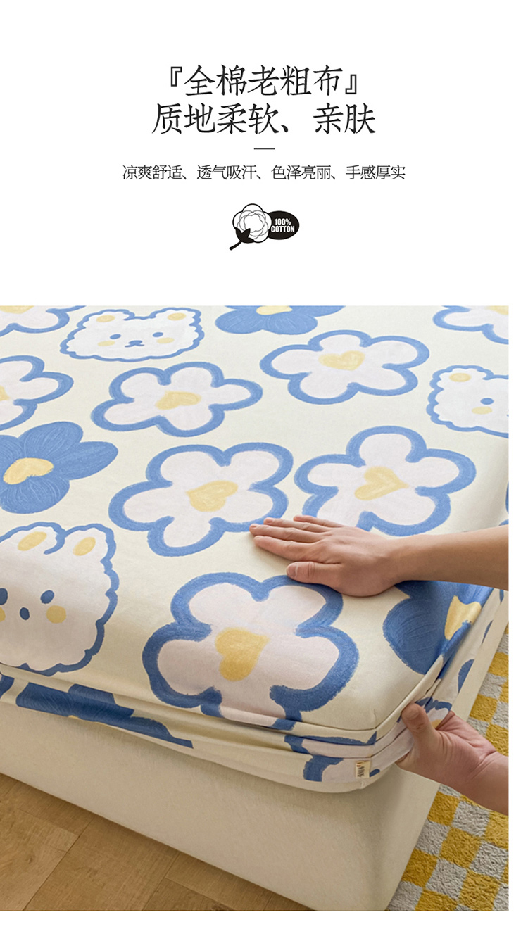 卧趣家纺 2023新款全棉老粗布单品系列单床笠 奶油