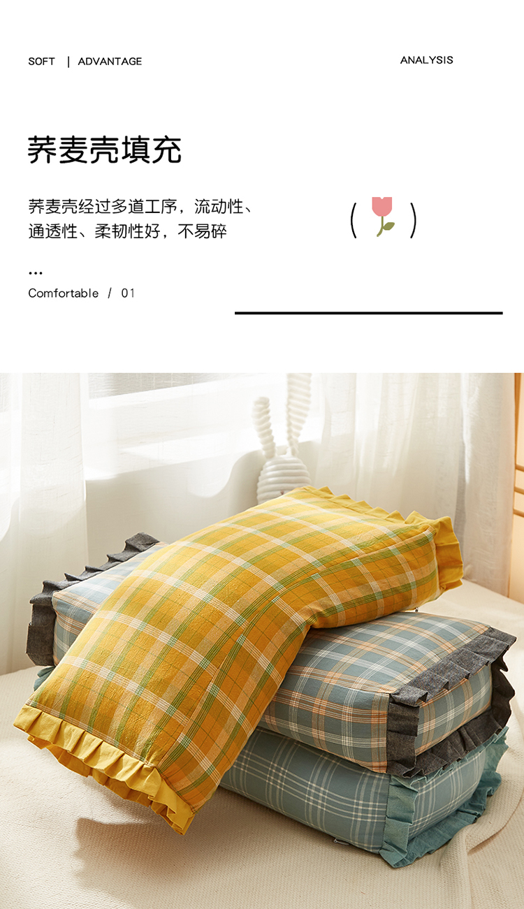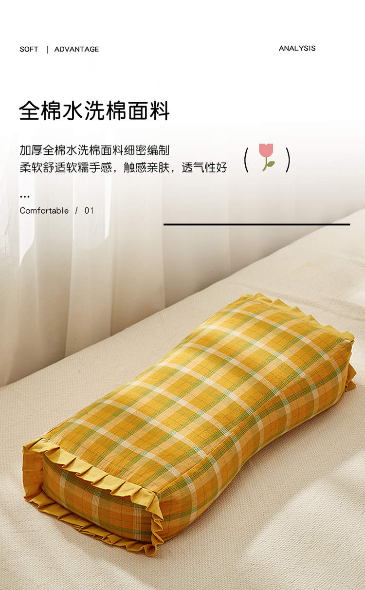 当前位置: 91家纺网 > 商品网购 > 枕头/枕芯/保健枕/颈椎枕 > 普通枕芯 > 乐可家纺2023新款水洗棉荞麦花边面包枕 南瓜格单只