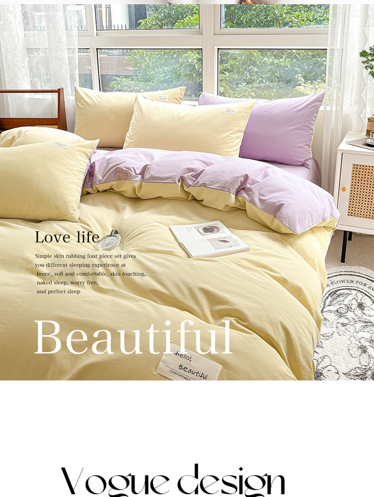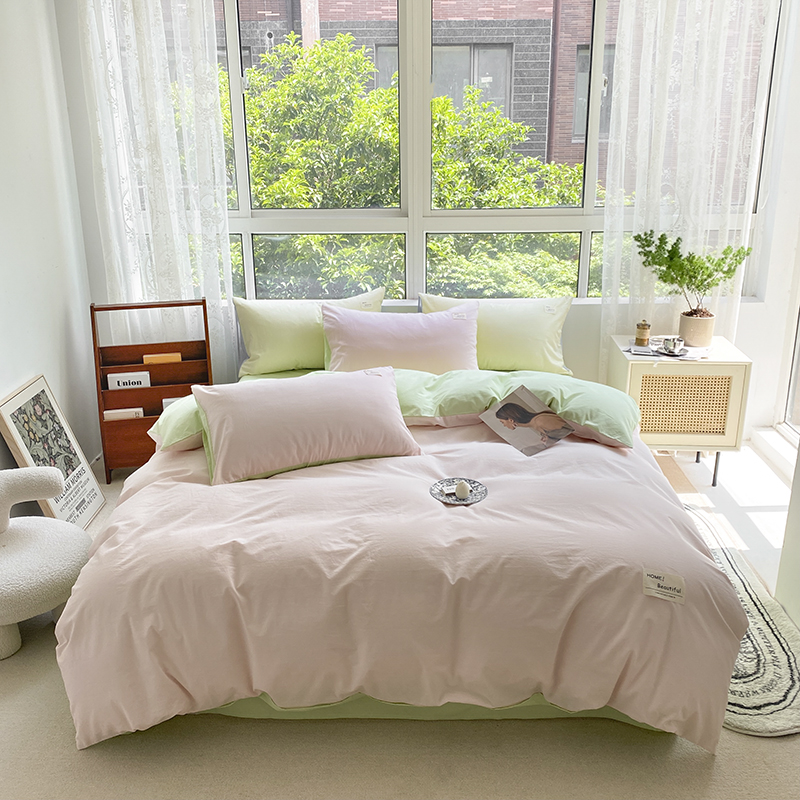 (总) 寐居 2023新款双拼全棉水洗棉纯色四件套,ins风-草绿色,ins风-湖绿色,ins风-裸粉色,ins风-迷雾蓝,ins风-奶油黄,ins风-柠檬黄,ins风-樱花粉,鹅黄+香芋紫,焦糖+卡其,军绿+焦糖,米黄+卡其,米黄+深粉,奶油玉+鹅黄,深粉+湖蓝,深蓝+焦糖,藏青+浅灰,绿+牛油果绿,米黄+浅蓝,抹茶绿+橡木黄,奶油玉+橄榄绿,奶油玉+香芋紫,浅豆沙+浅灰,深蓝+灰