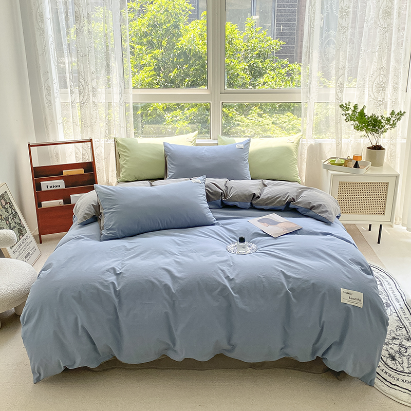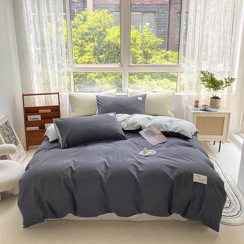 (总)寐居 2023新款全棉水洗棉双拼色纯色单被套