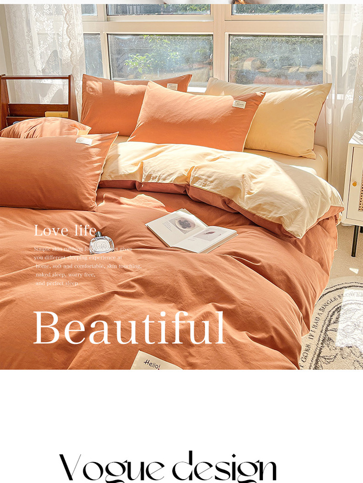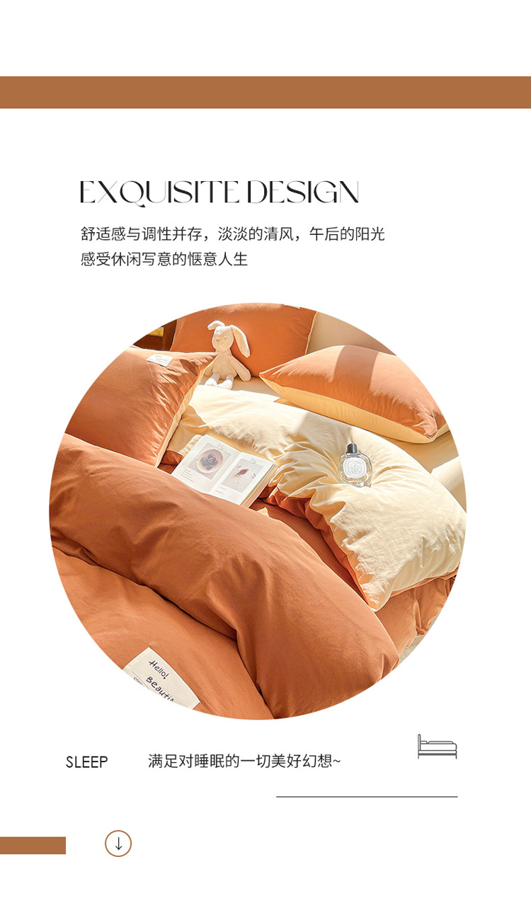 商品名称:寐居 2023新款全棉水洗棉双拼色纯色单被套 焦糖+卡其